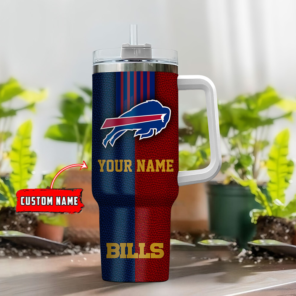 Buffalo Bills NFL Leather Effect Custom Stanley Quencher 40oz Stainless Steel Tumbler With Handle