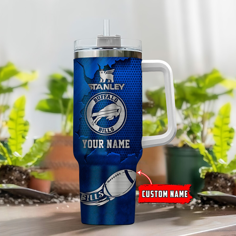 Buffalo Bills NFL Metal Style Custom Stanley Quencher 40oz Stainless Steel Tumbler With Handle