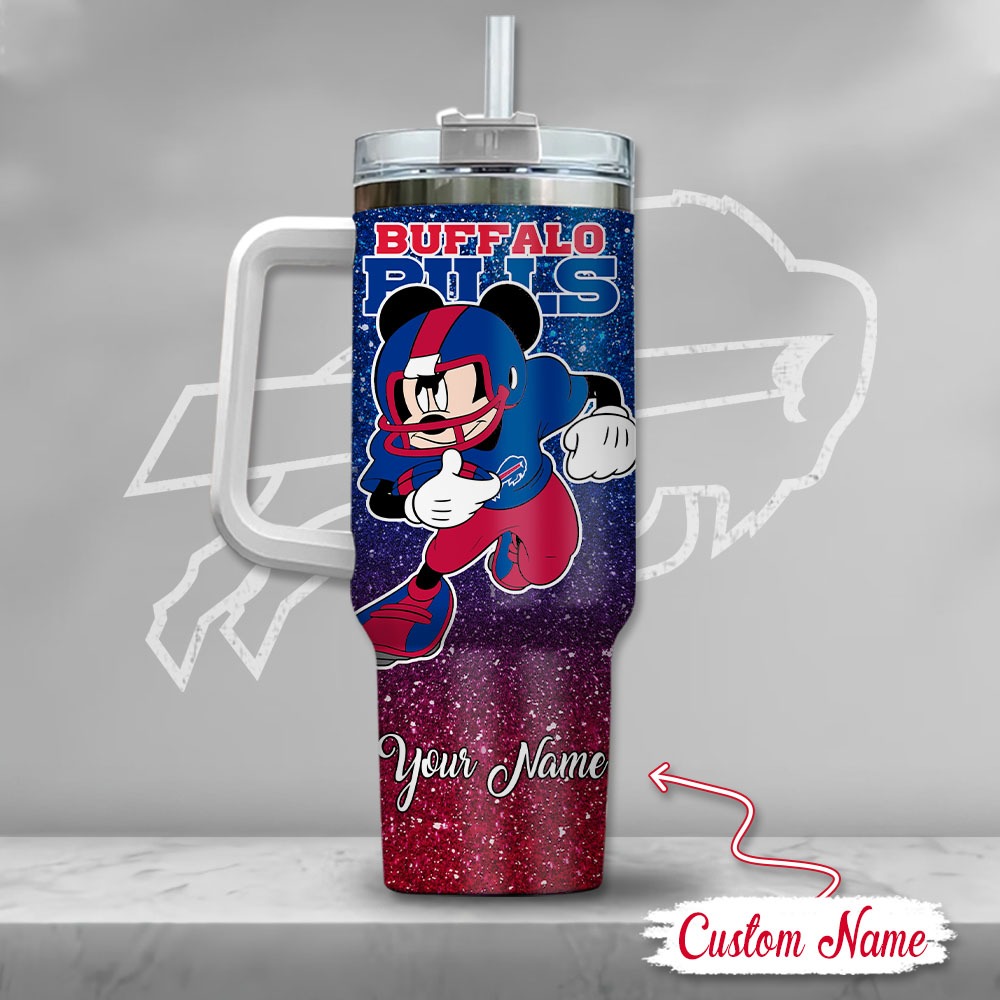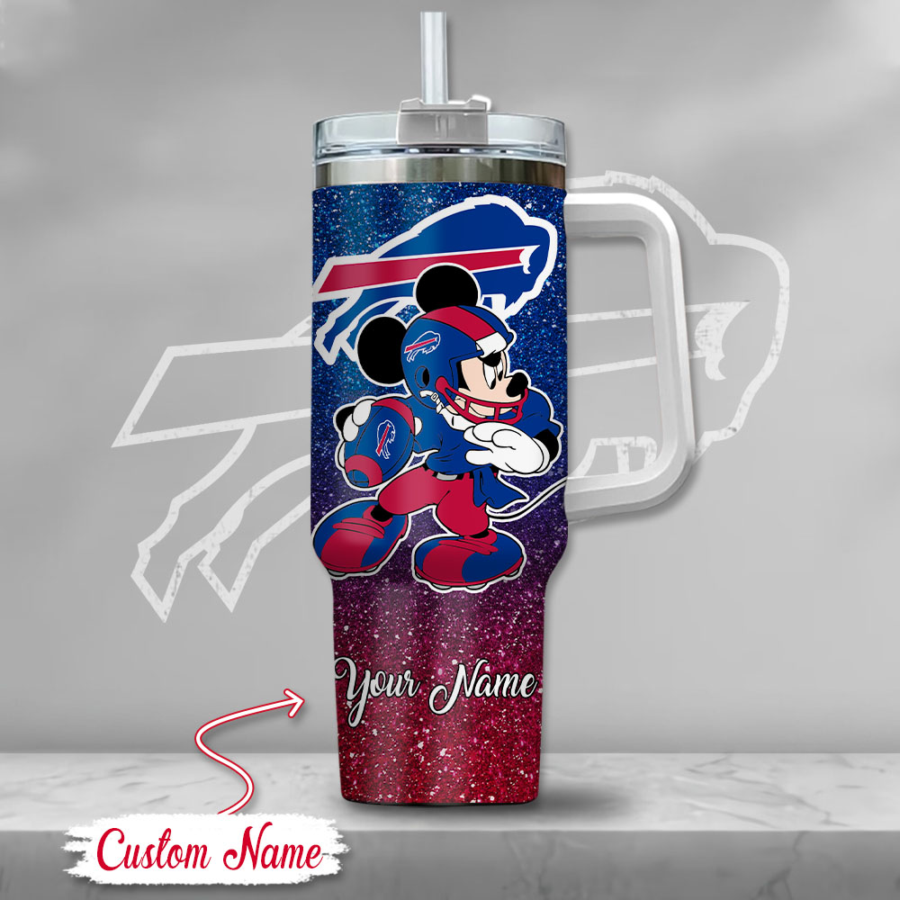 Buffalo Bills NFL Mickey Mouse Glitter Custom Stanley Quencher 40oz Stainless Steel Tumbler With Handle