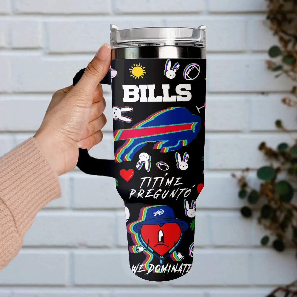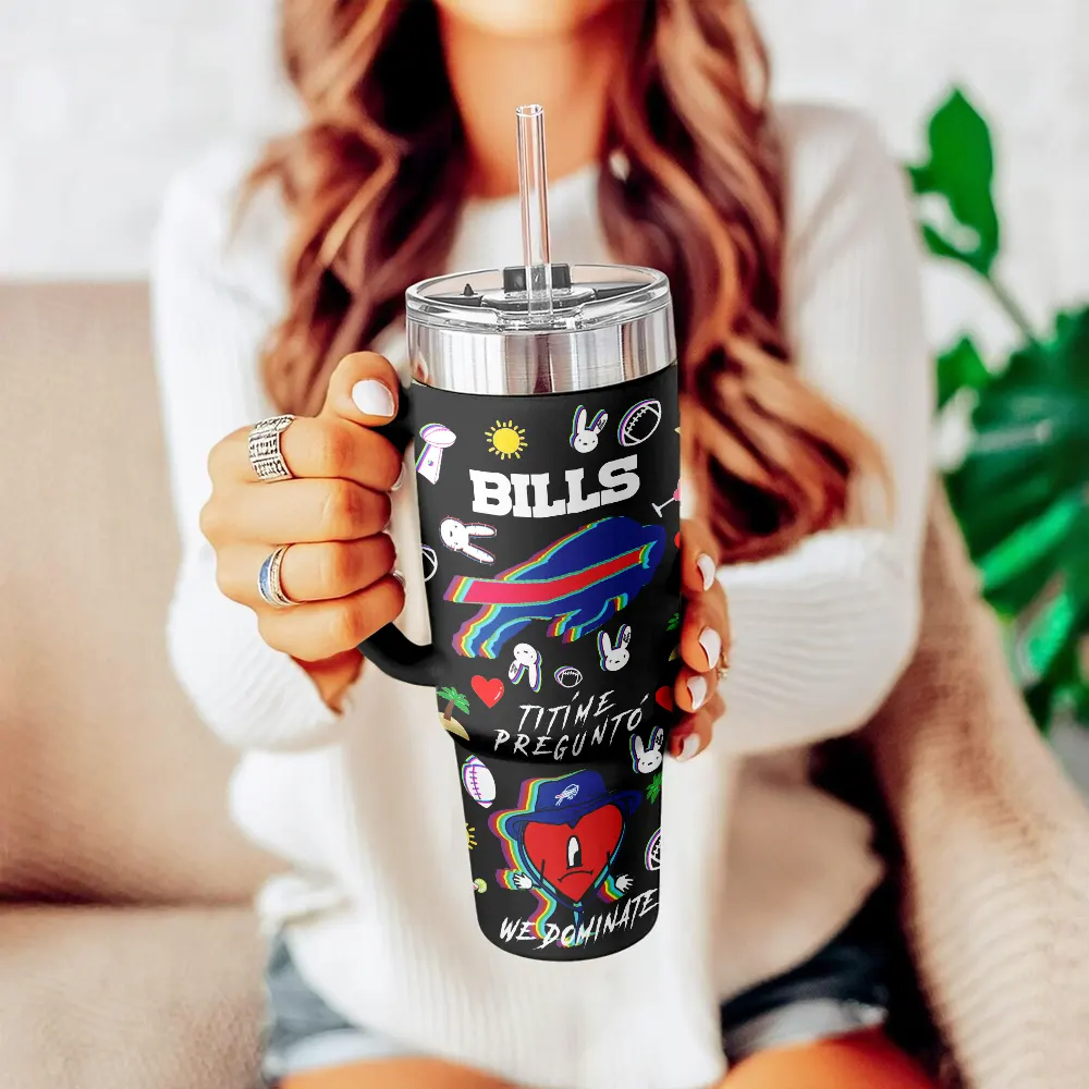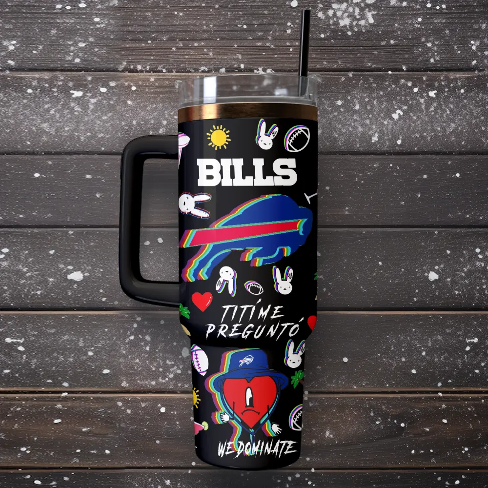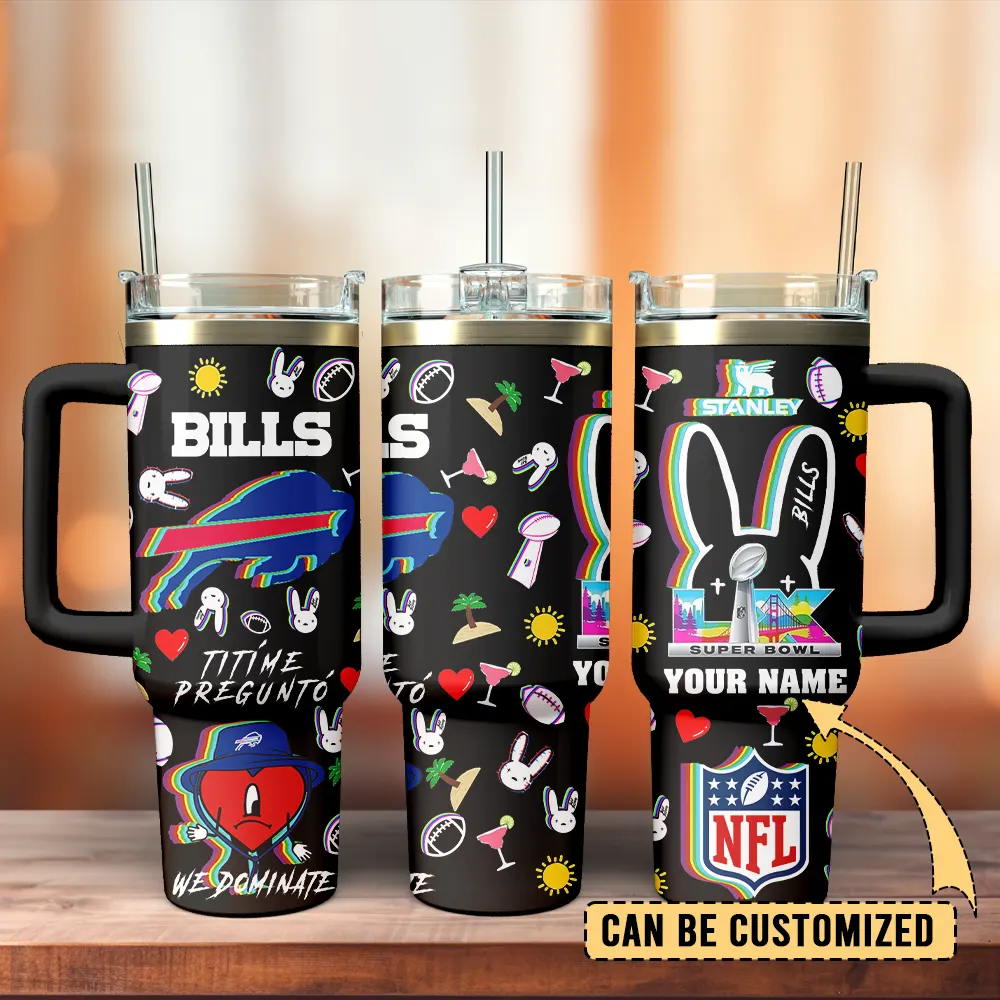 Buffalo Bills NFL x Bad Bunny Custom Stanley Quencher 40oz Stainless Steel Tumbler With Handle