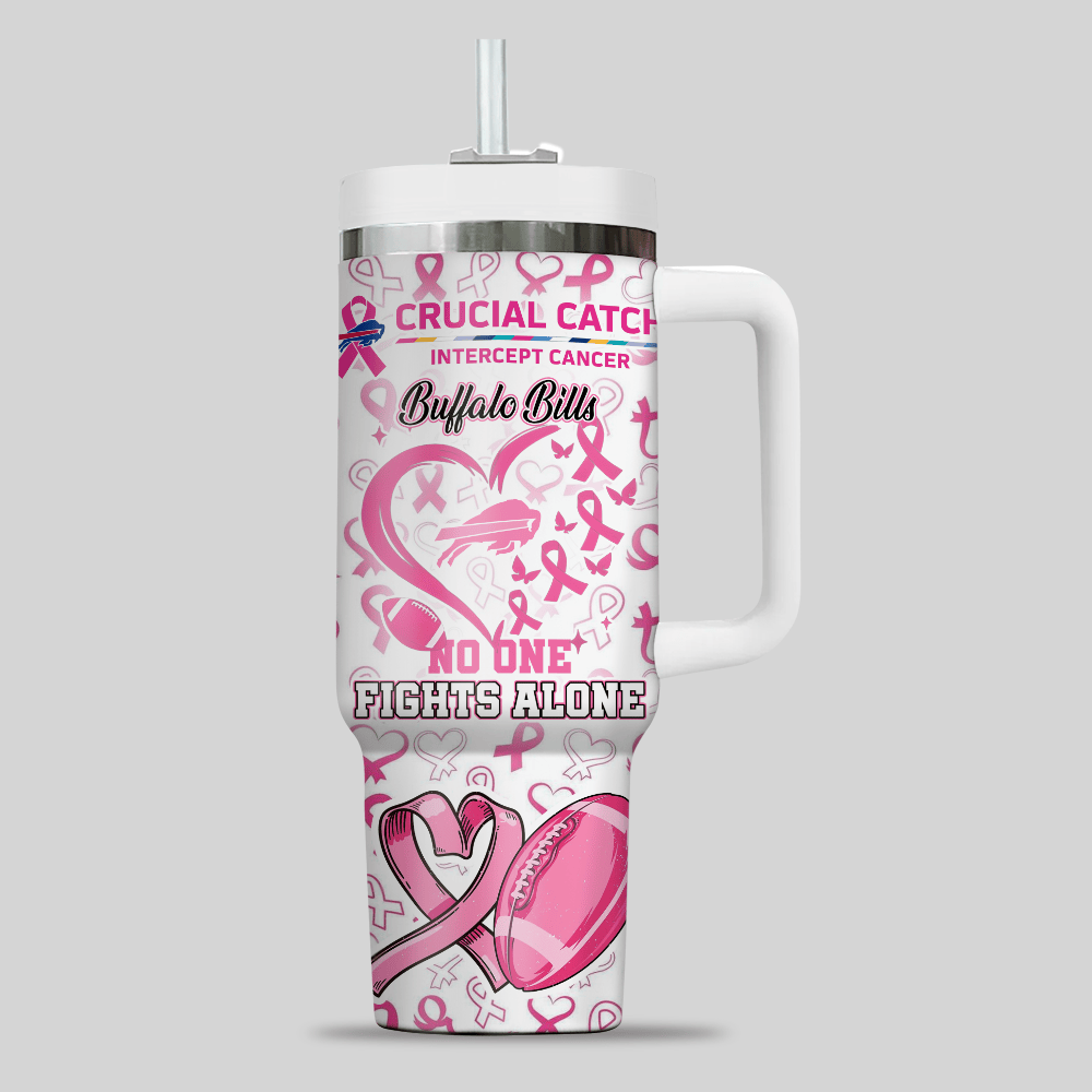 Buffalo Bills NFL x Breast Cancer Awareness Custom Stanley Quencher 40oz Stainless Steel Tumbler With Handle