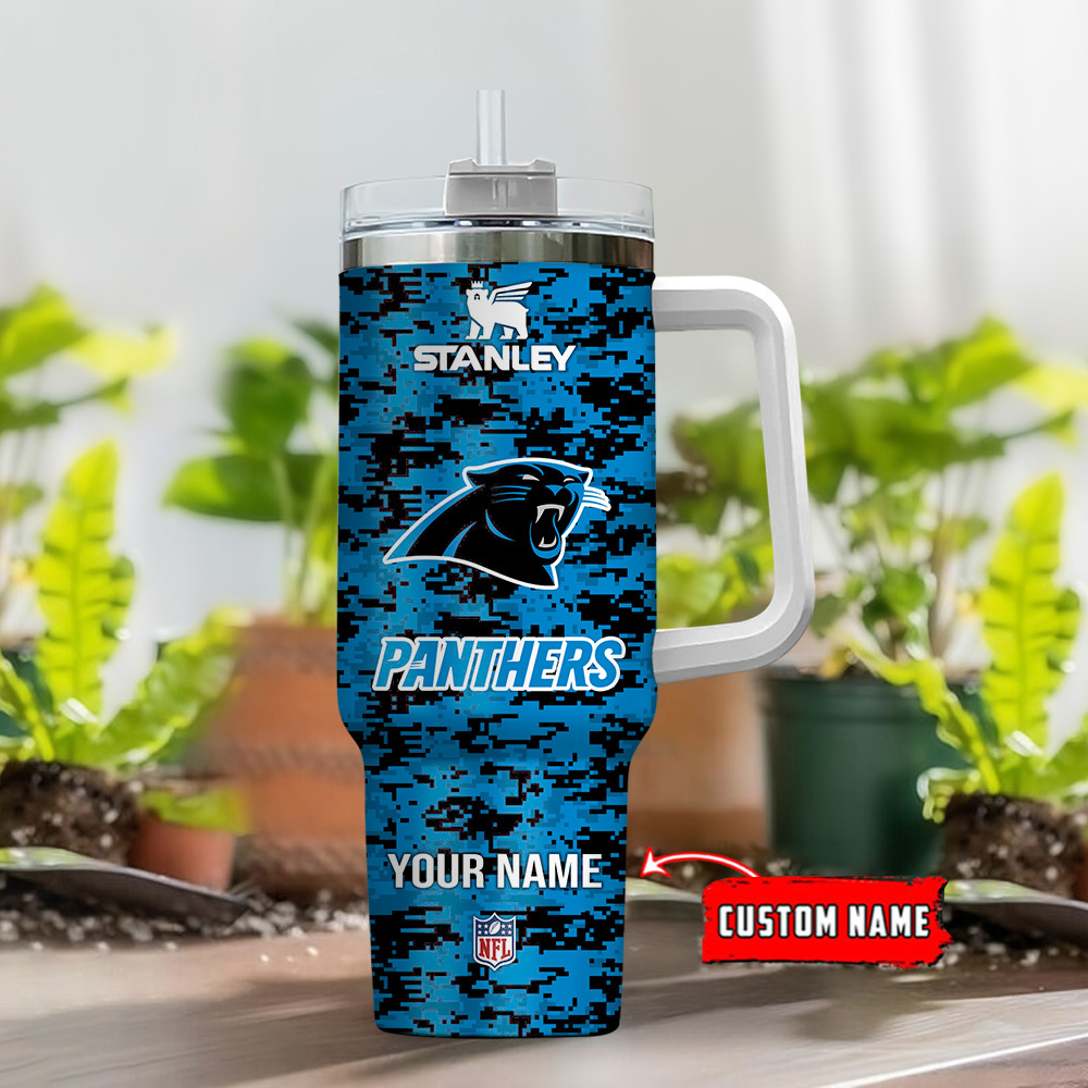 Carolina Panthers NFL Camouflage Custom Stanley Quencher 40oz Stainless Steel Tumbler With Handle