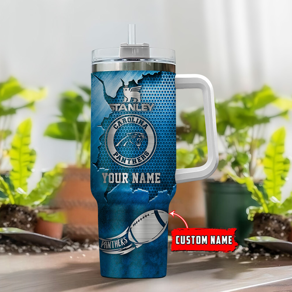 Carolina Panthers NFL Metal Style Custom Stanley Quencher 40oz Stainless Steel Tumbler With Handle