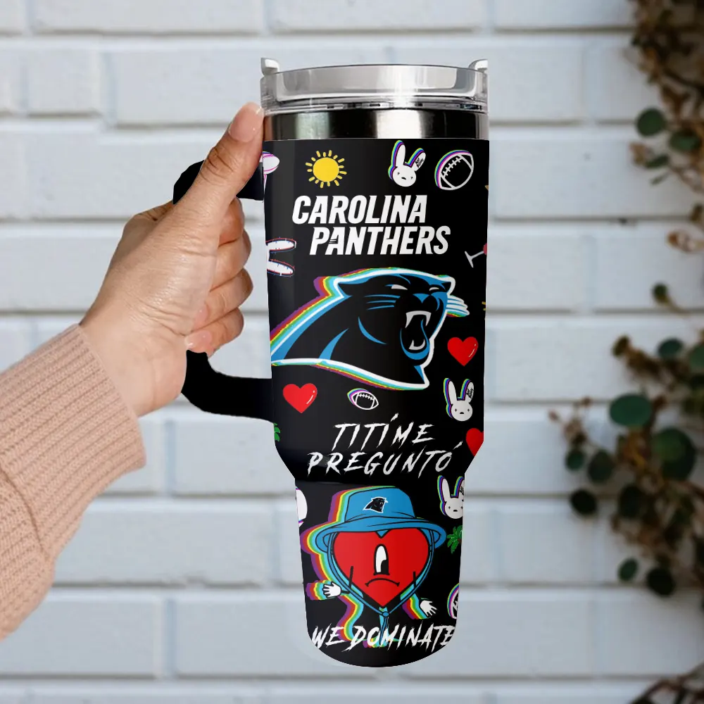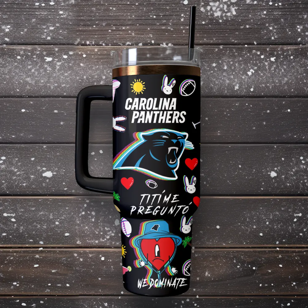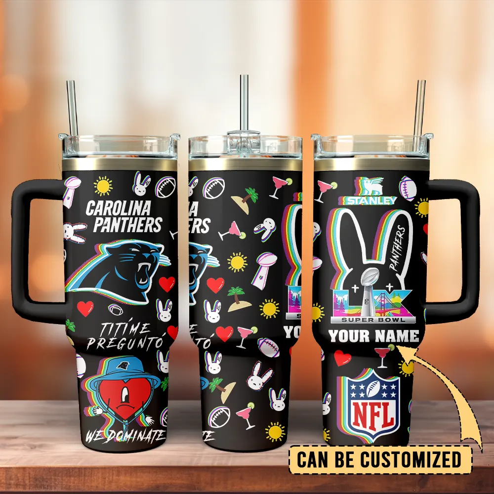 Carolina Panthers NFL x Bad Bunny Custom Stanley Quencher 40oz Stainless Steel Tumbler With Handle