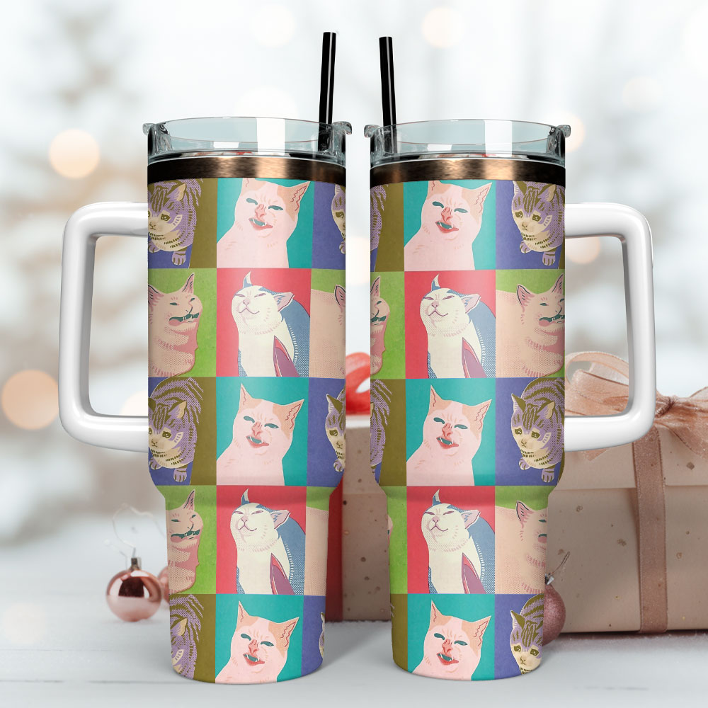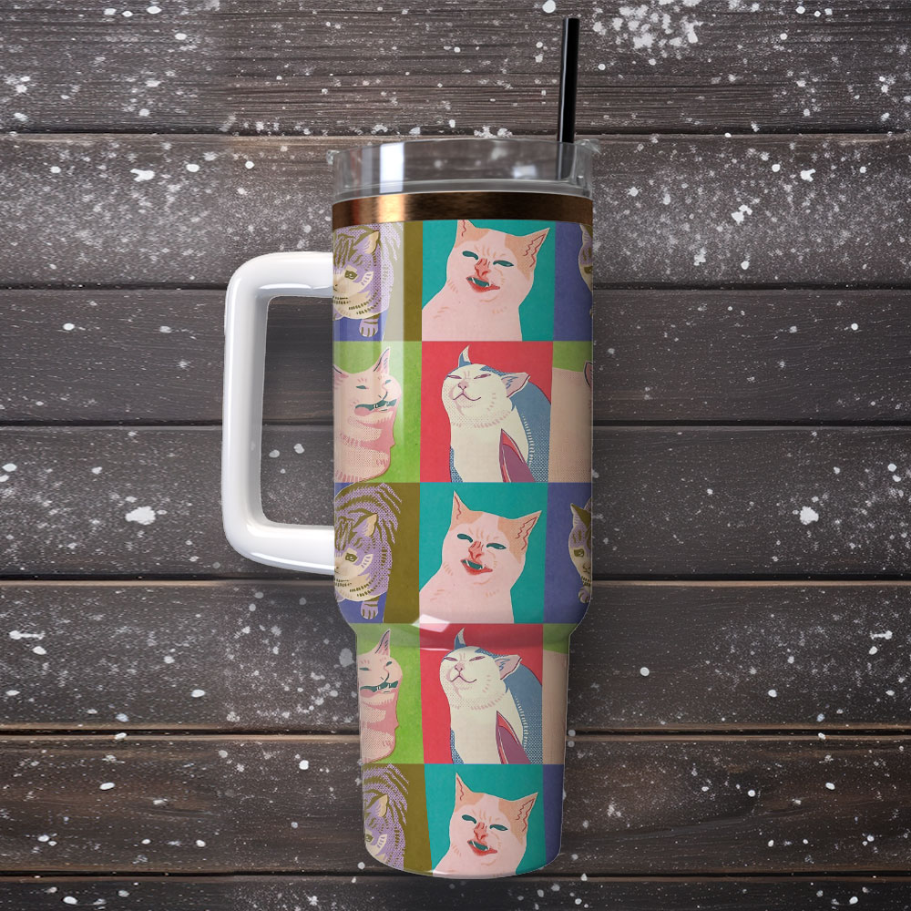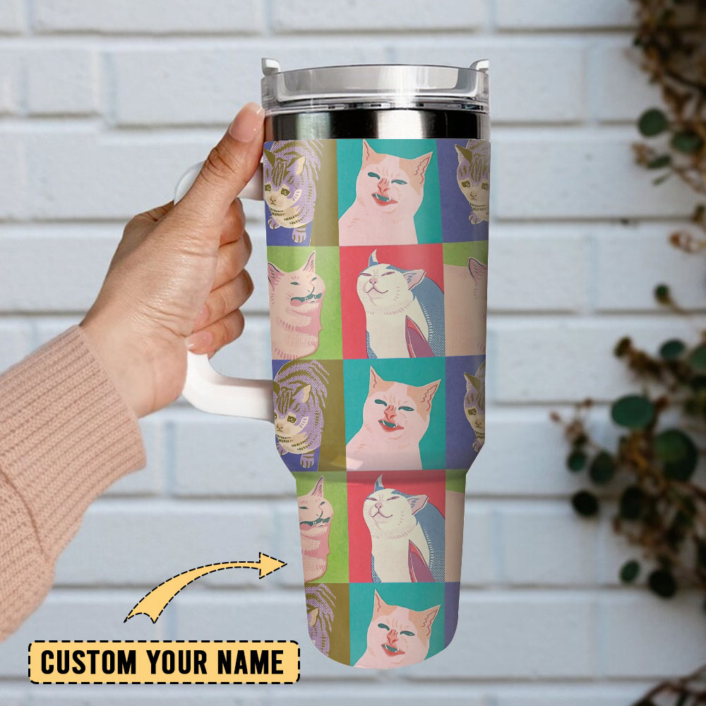 Cat Funny Cartoon Pattern Animal Artwork Custom Stanley Quencher 40oz Stainless Steel Tumbler With Handle