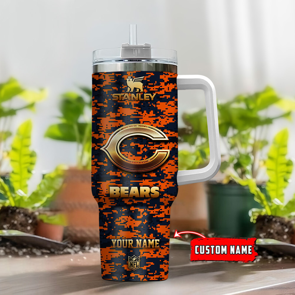 Chicago Bears NFL Camouflage Golden Logo Custom Stanley Quencher 40oz Stainless Steel Tumbler With Handle