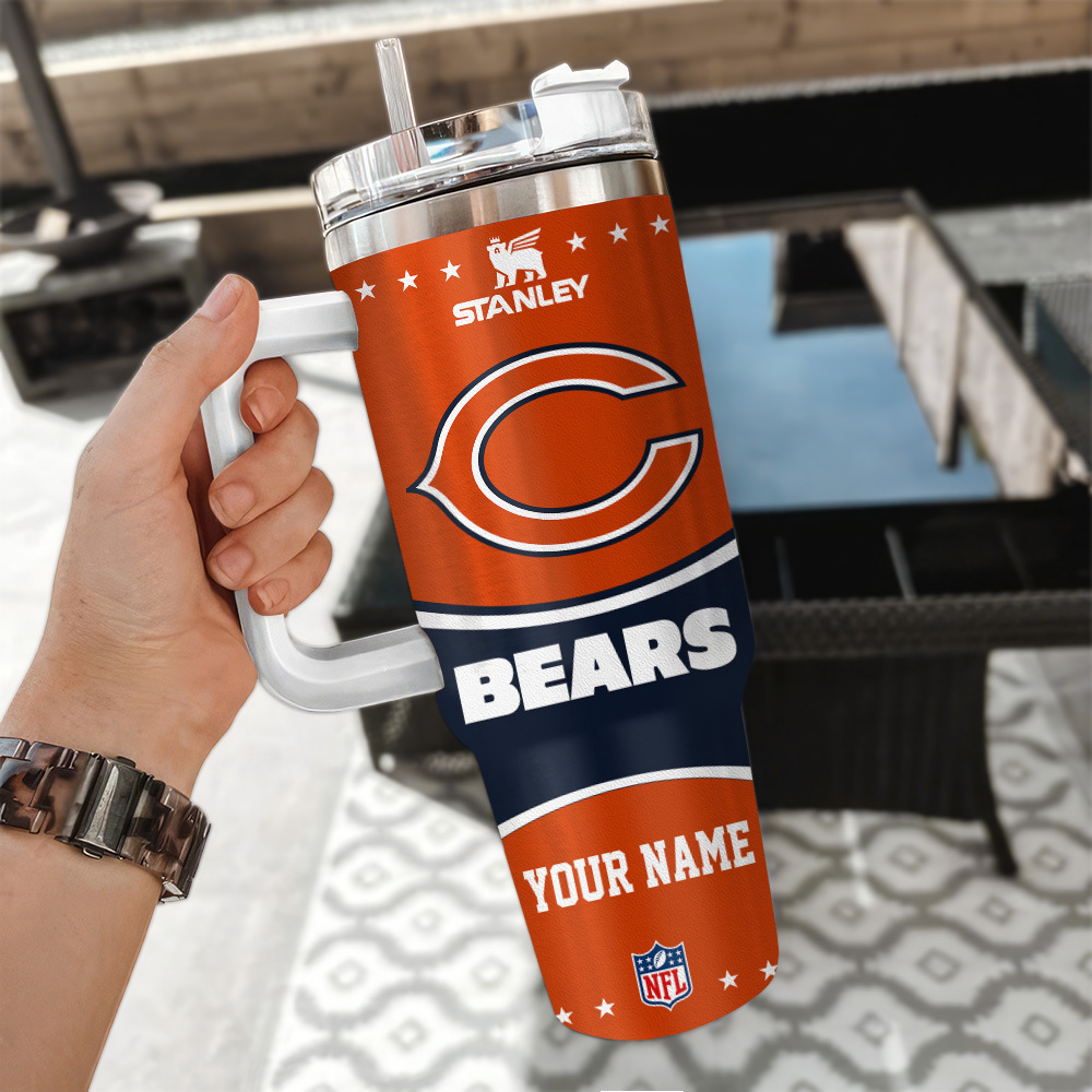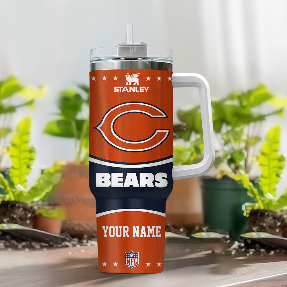 Chicago Bears NFL Custom Stanley Quencher 40oz Stainless Steel Tumbler With Handle