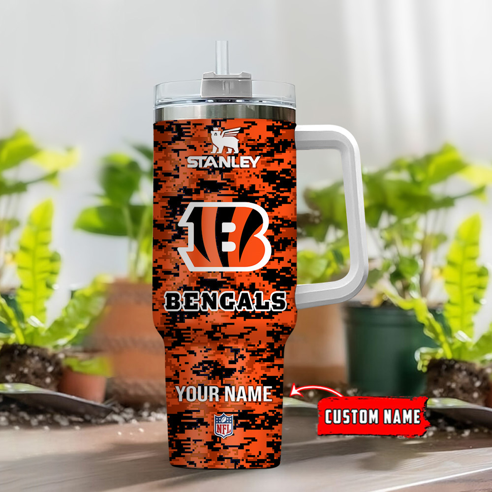 Cincinnati Bengals NFL Camouflage Custom Stanley Quencher 40oz Stainless Steel Tumbler With Handle