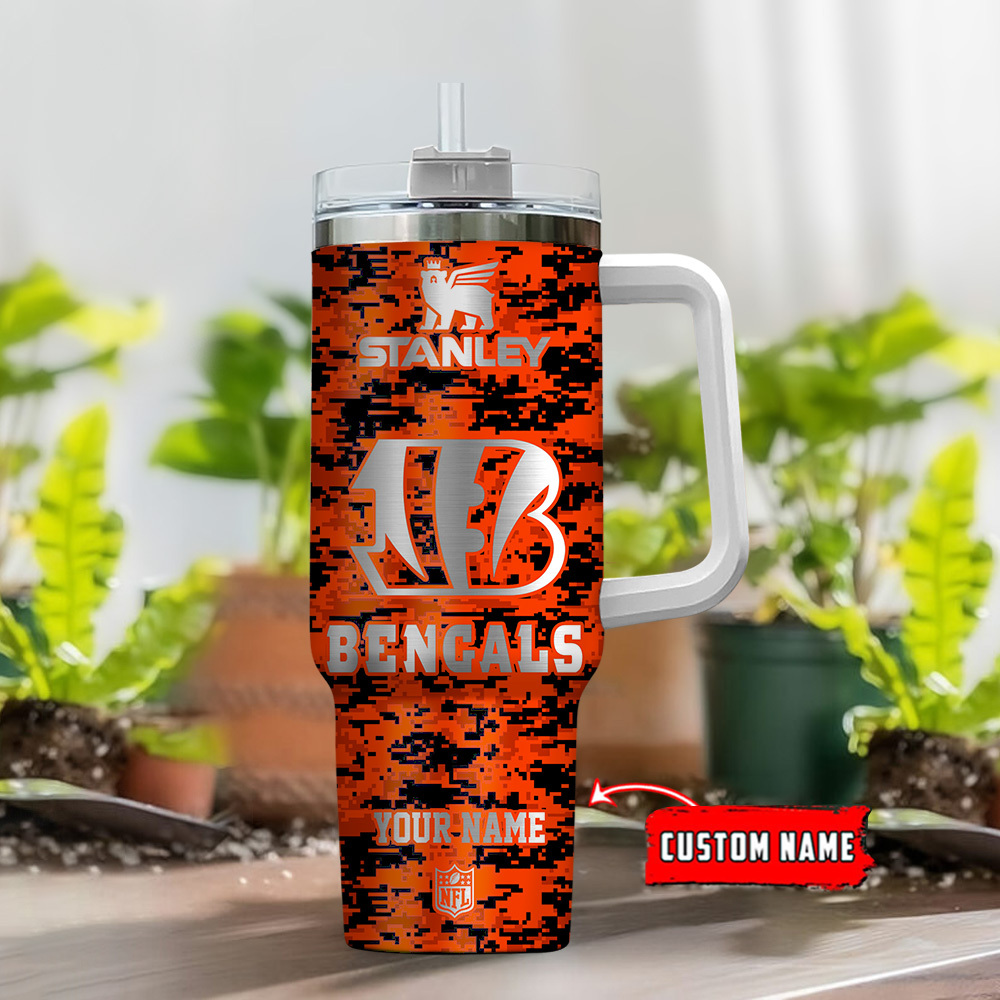 Cincinnati Bengals NFL Camouflage Silver Logo Custom Stanley Quencher 40oz Stainless Steel Tumbler With Handle