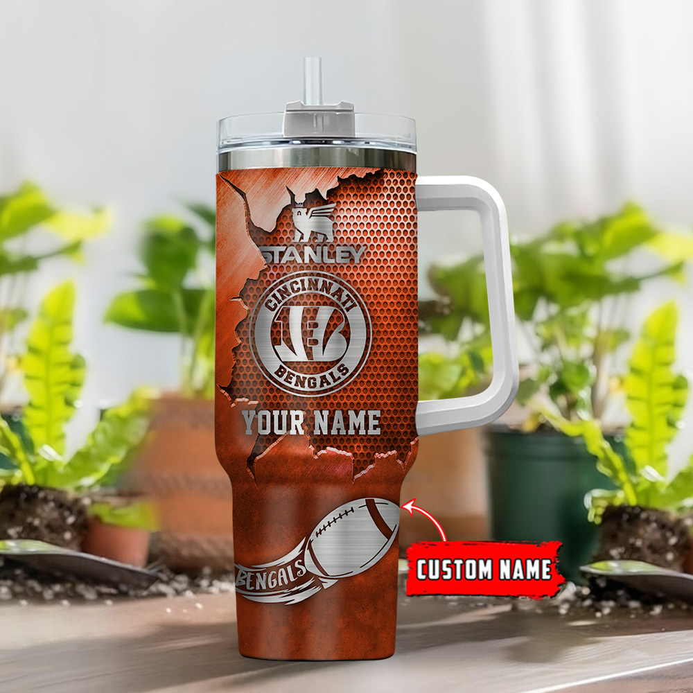 Cincinnati Bengals NFL Metal Style Custom Stanley Quencher 40oz Stainless Steel Tumbler With Handle