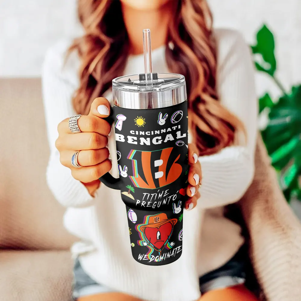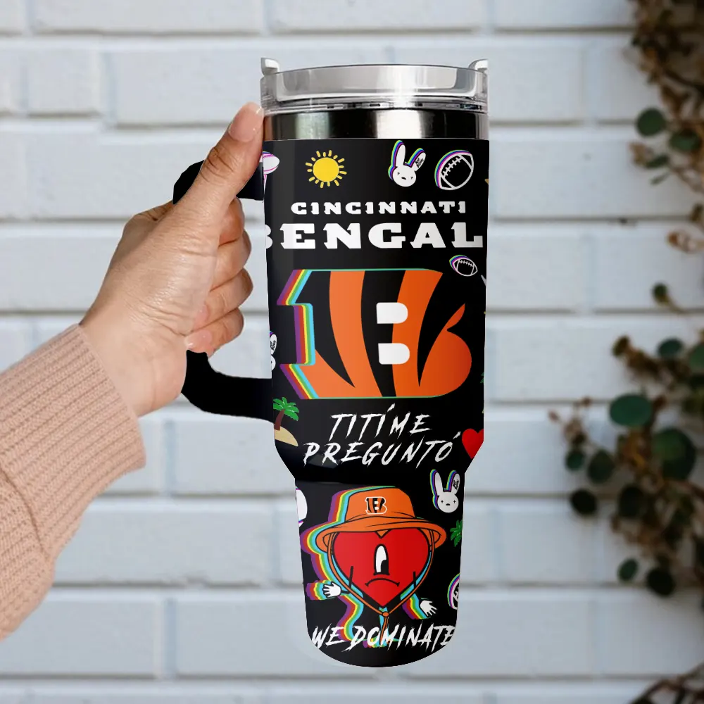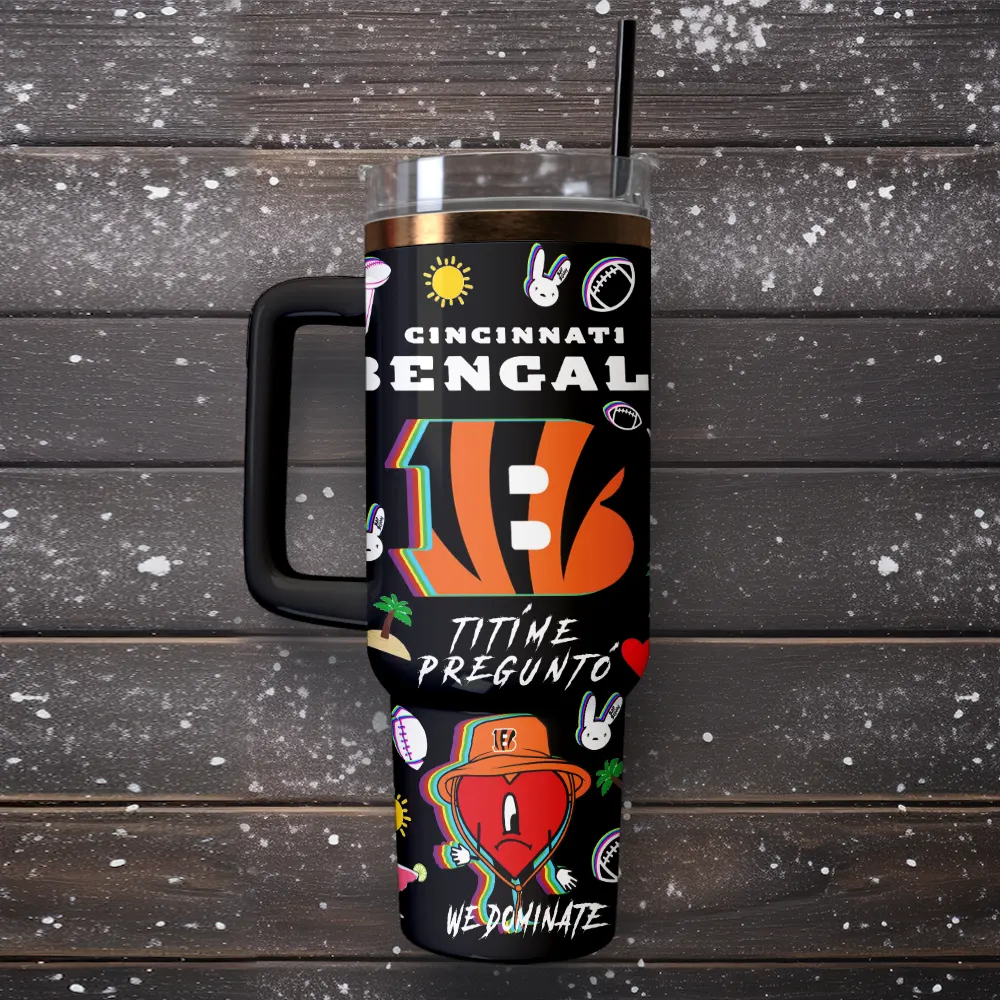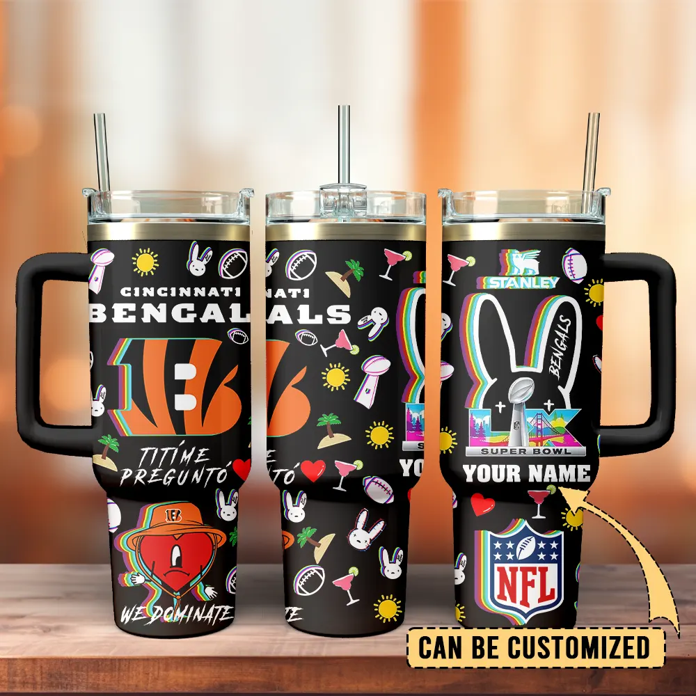 Cincinnati Bengals NFL x Bad Bunny Custom Stanley Quencher 40oz Stainless Steel Tumbler With Handle
