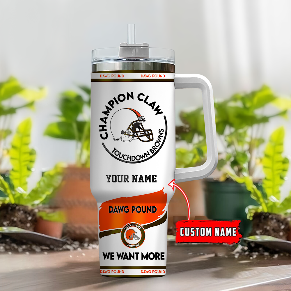 Cleveland Browns NFL Champion Claw Custom Stanley Quencher 40oz Stainless Steel Tumbler With Handle