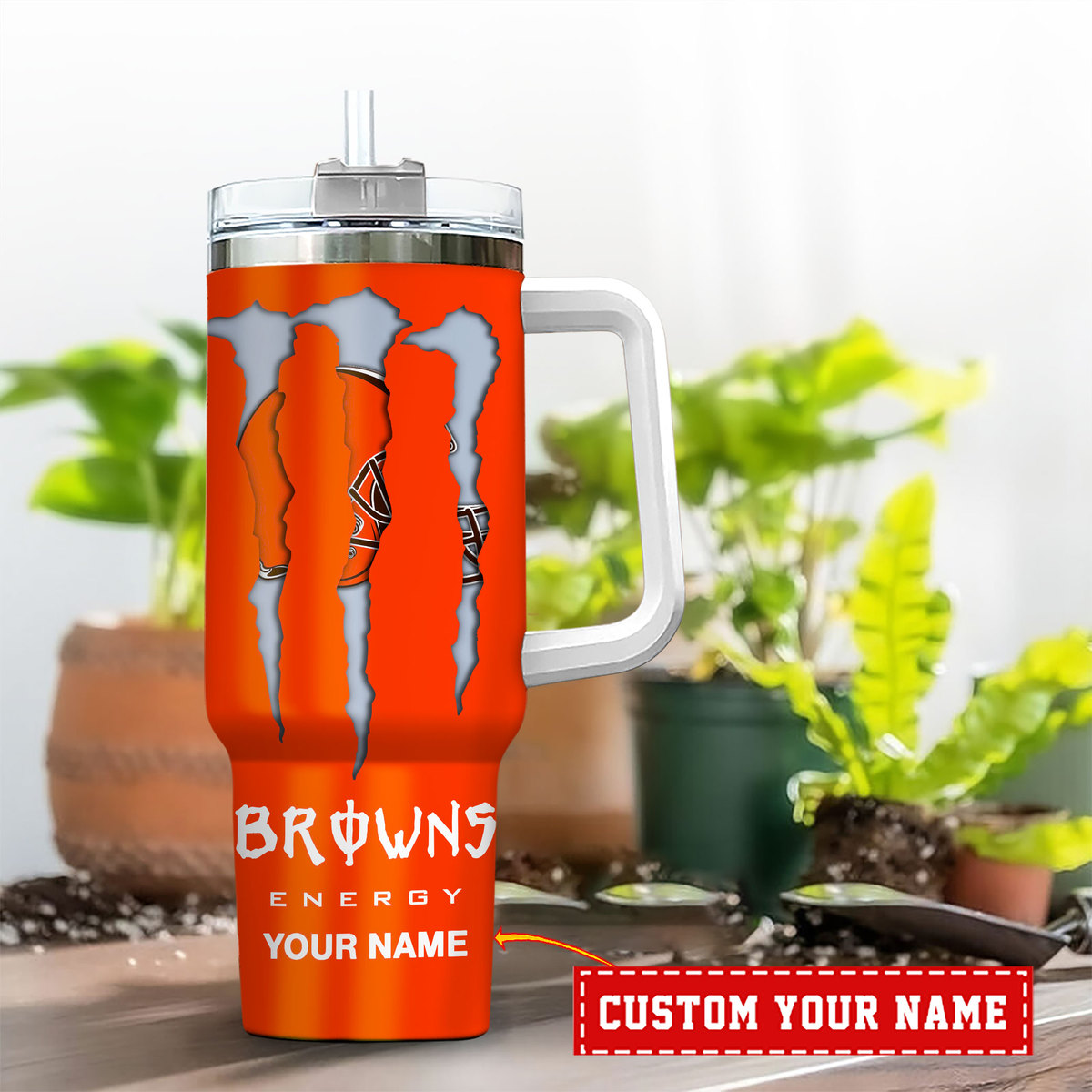 Cleveland Browns NFL Energy Nutrition Facts Custom Stanley Quencher 40oz Stainless Steel Tumbler With Handle