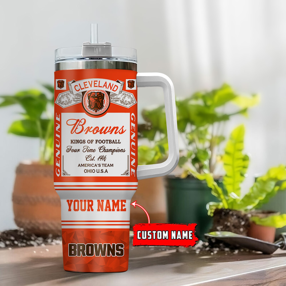 Cleveland Browns NFL Kings of Football Custom Stanley Quencher 40oz Stainless Steel Tumbler With Handle