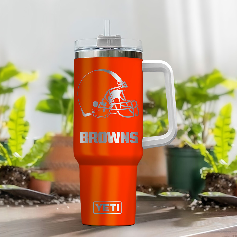 Cleveland Browns NFL Laser Engraved Effect Custom Stanley Quencher 40oz Stainless Steel Tumbler With Handle