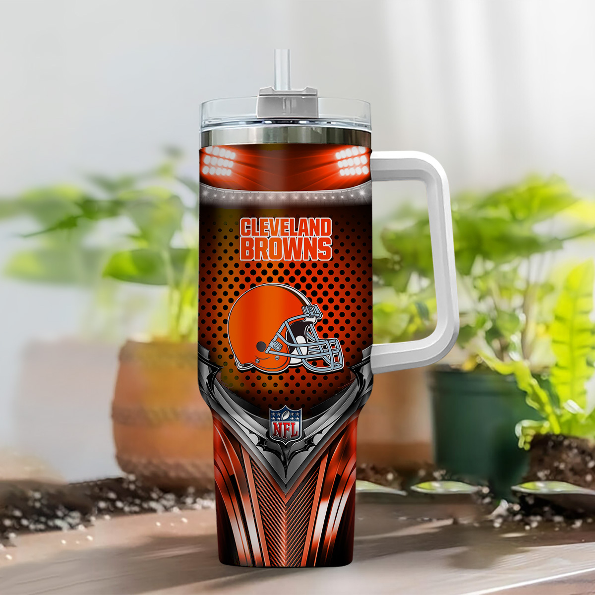 Cleveland Browns NFL Nutrition Facts Custom Stanley Quencher 40oz Stainless Steel Tumbler With Handle