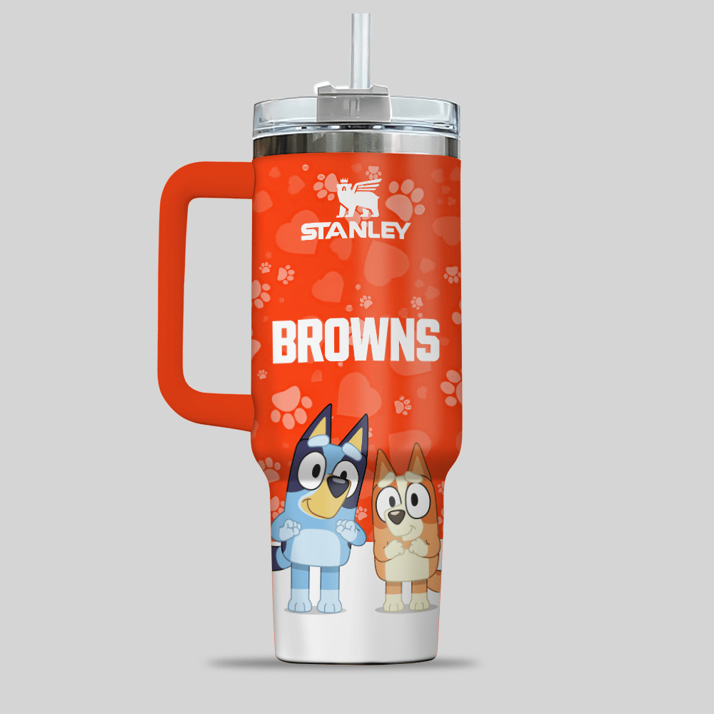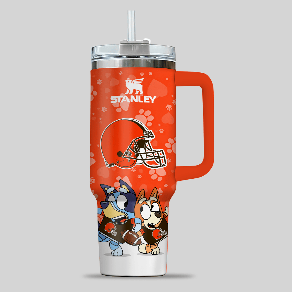 Cleveland Browns NFL x Bluey Custom Stanley Quencher 40oz Stainless Steel Tumbler With Handle