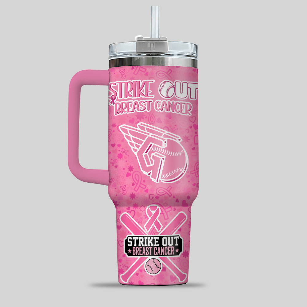 Cleveland Guardians MLB x Breast Cancer Awareness Custom Stanley Quencher 40oz Stainless Steel Tumbler With Handle