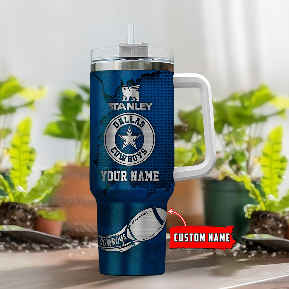 Dallas Cowboys NFL Metal Style Custom Stanley Quencher 40oz Stainless Steel Tumbler With Handle