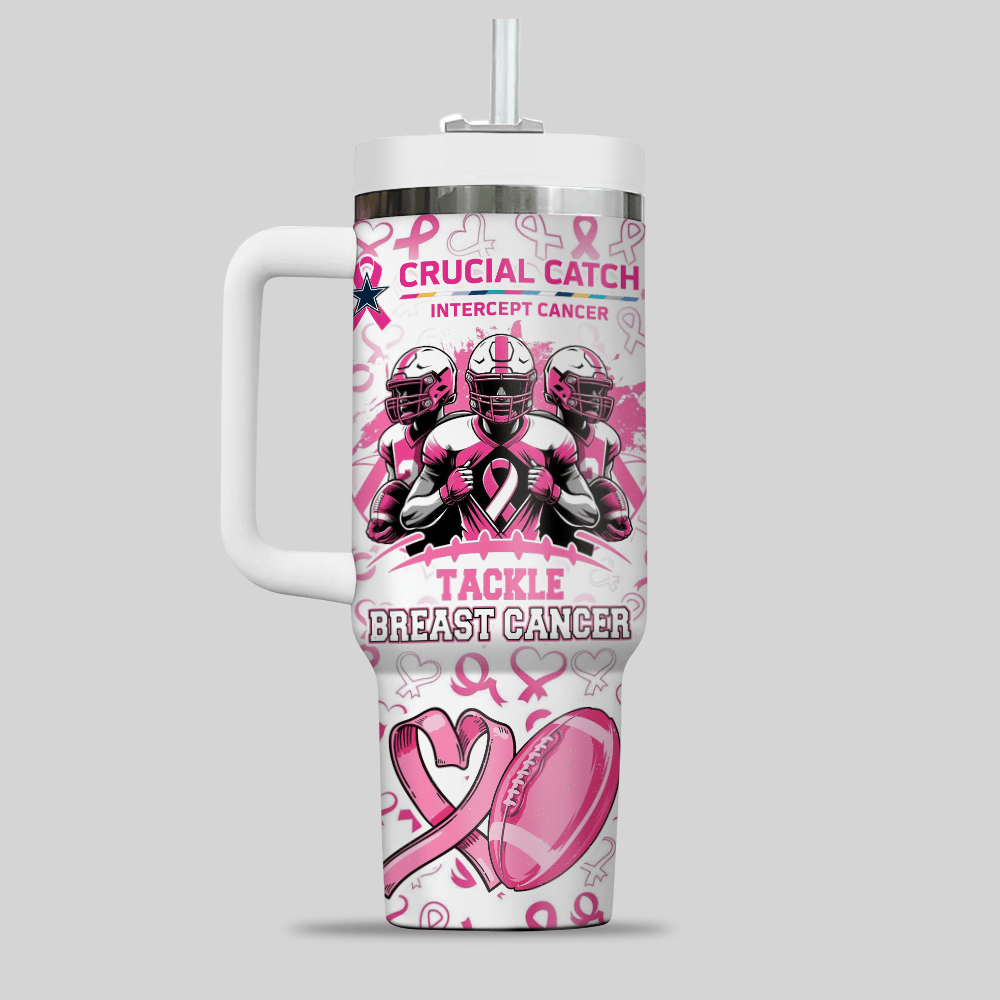 Dallas Cowboys NFL x Breast Cancer Awareness Custom Stanley Quencher 40oz Stainless Steel Tumbler With Handle