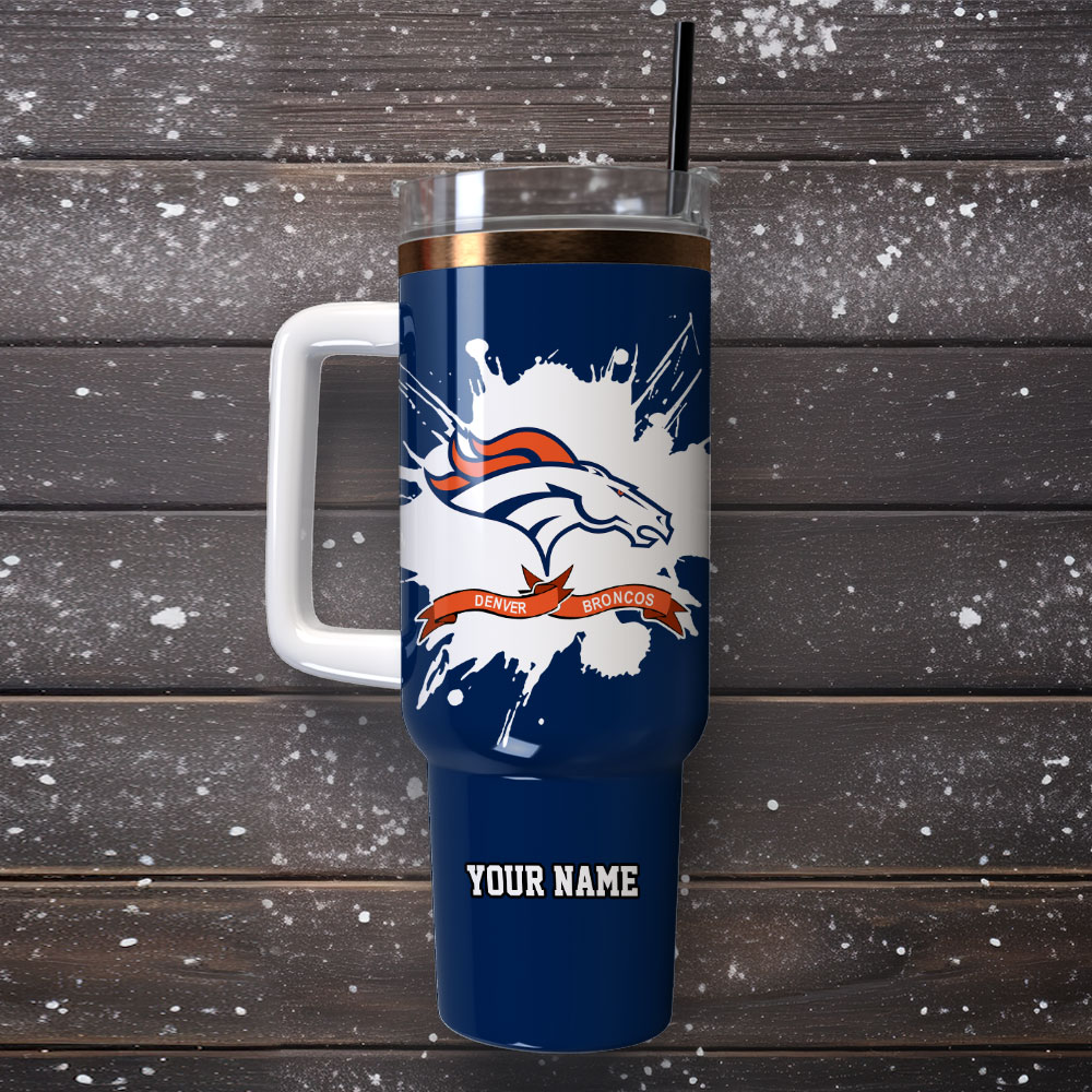 Denver Broncos Football NFL Sport Custom Stanley Quencher 40oz Stainless Steel Tumbler With Handle