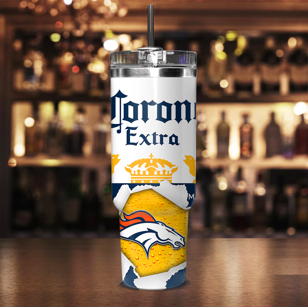 Denver Broncos NFL Corona Extra Custom Stanley Quencher 40oz Stainless Steel Tumbler With Handle