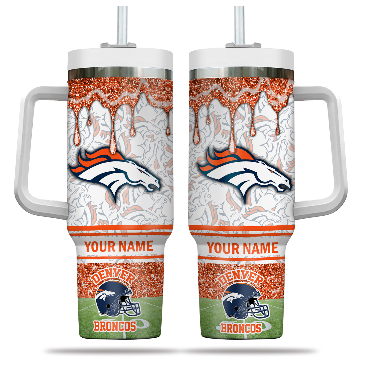 Denver Broncos NFL Glitter Custom Stanley Quencher 40oz Stainless Steel Tumbler With Handle