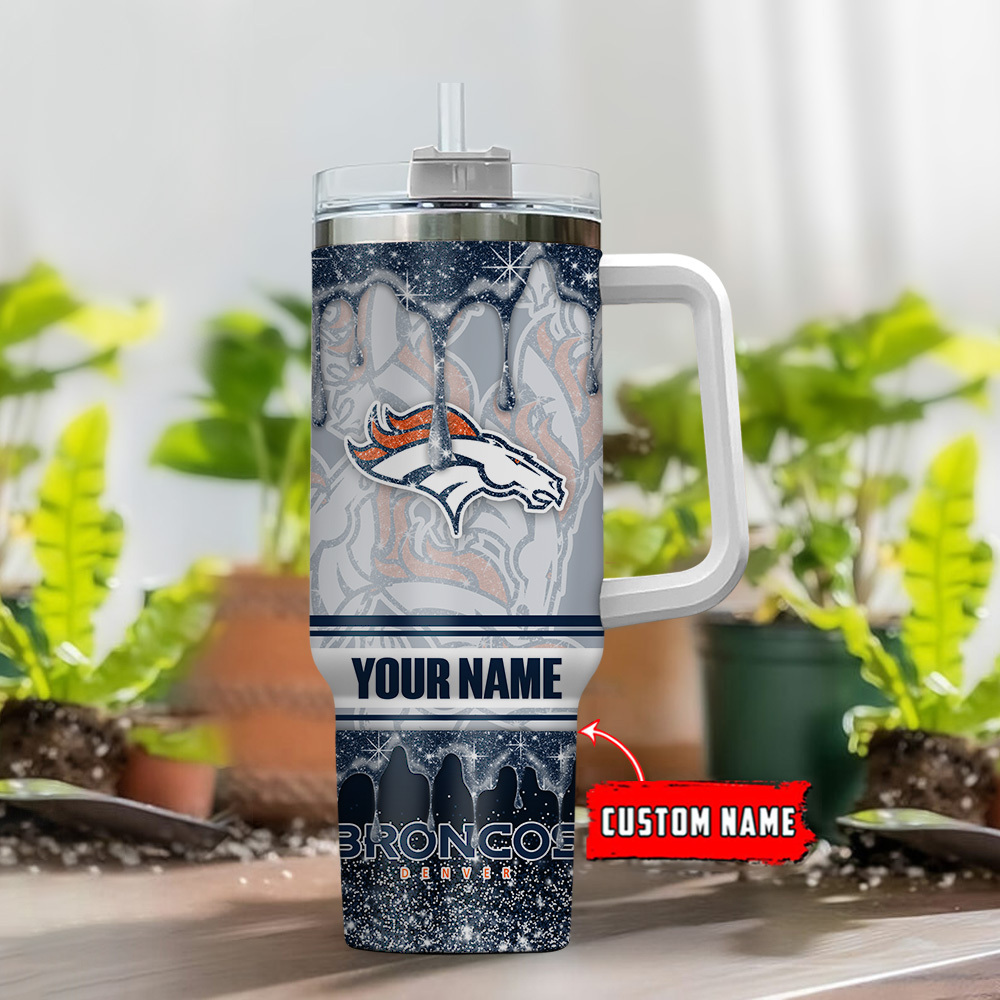 Denver Broncos NFL Glitter Custom Stanley Quencher 40oz Stainless Steel Tumbler With Handle