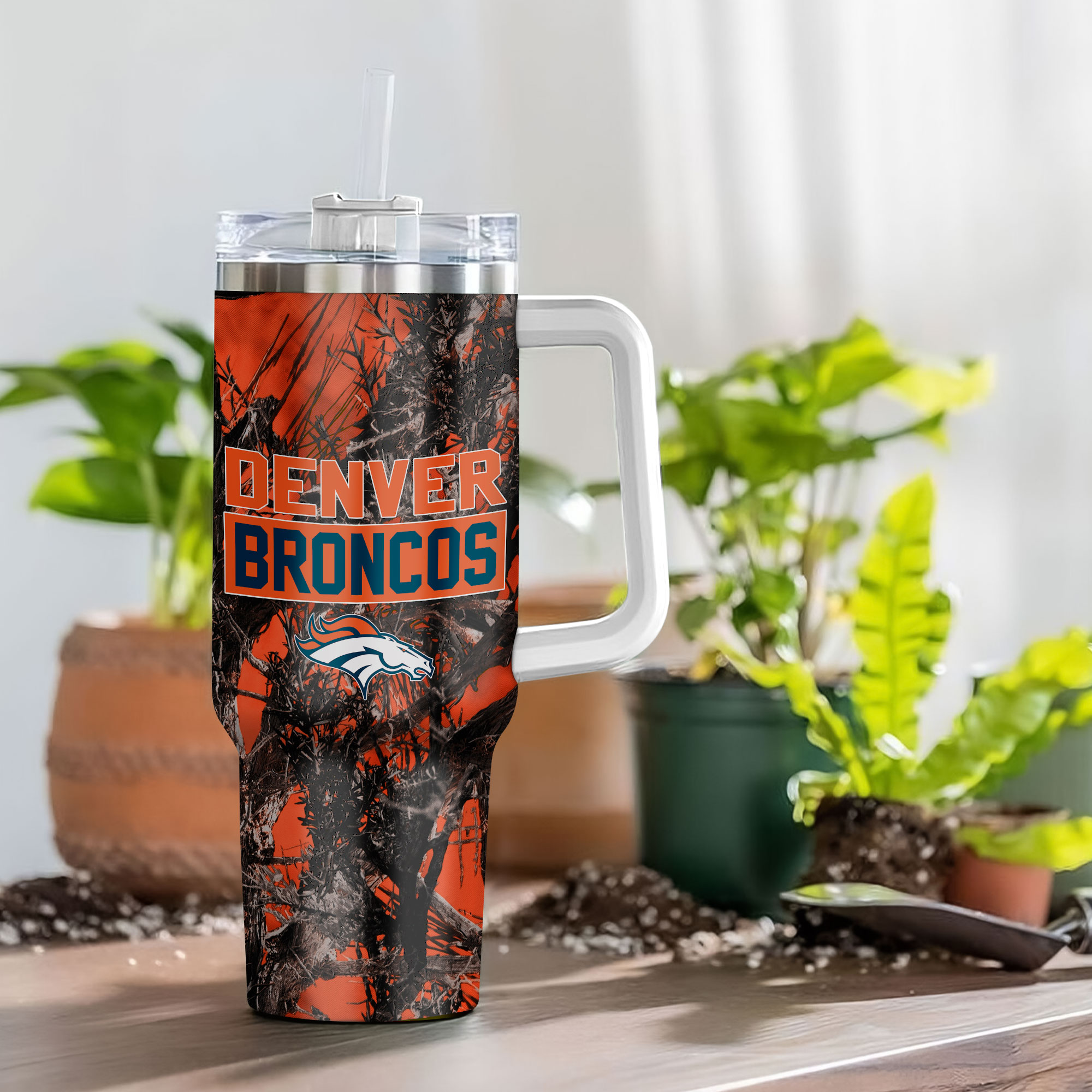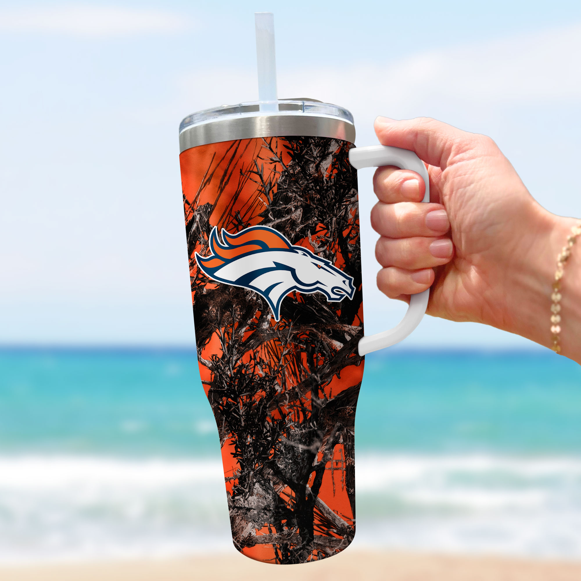 Denver Broncos NFL Hunting Custom Stanley Quencher 40oz Stainless Steel Tumbler With Handle