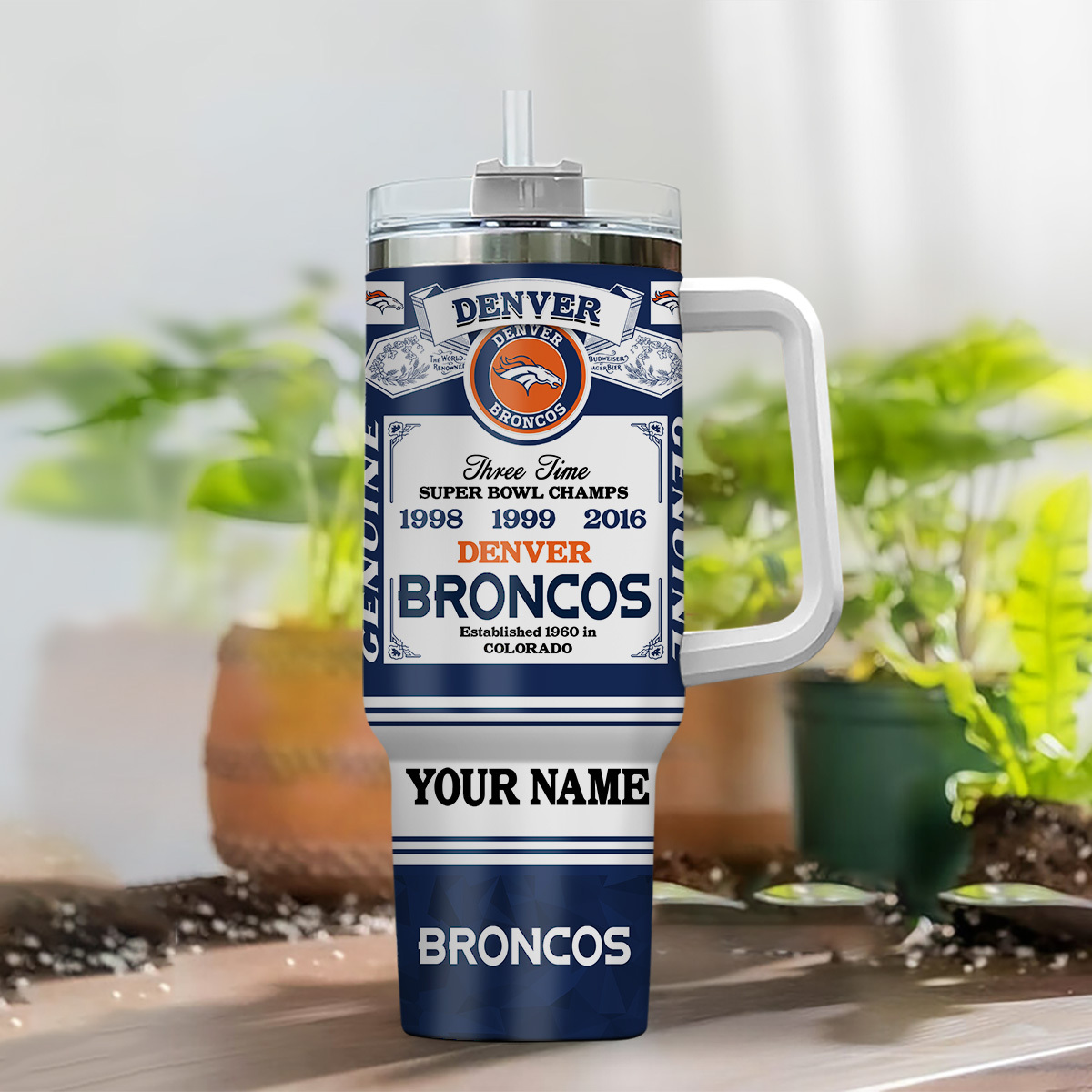 Denver Broncos NFL Super Bowl Champs Pride Custom Stanley Quencher 40oz Stainless Steel Tumbler With Handle
