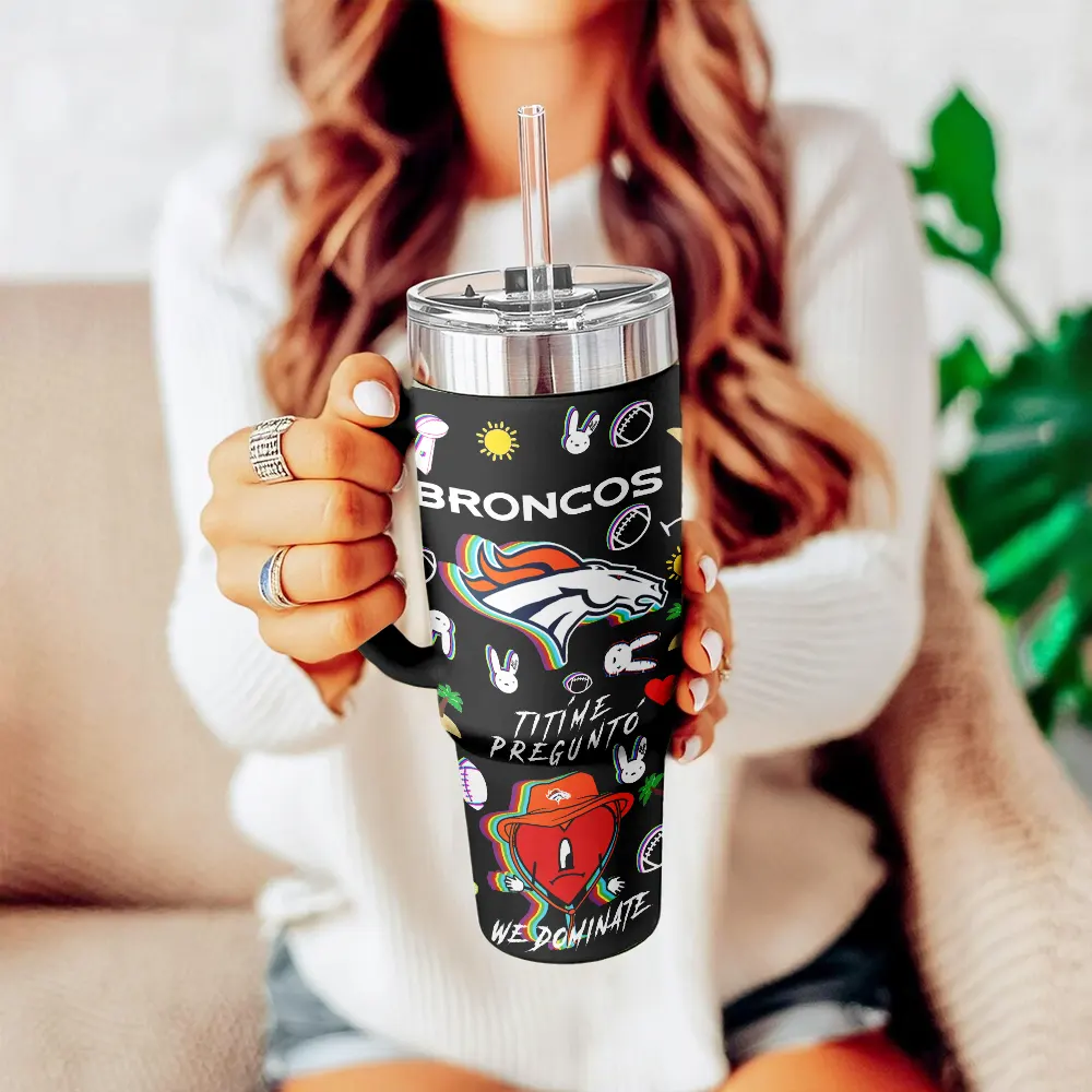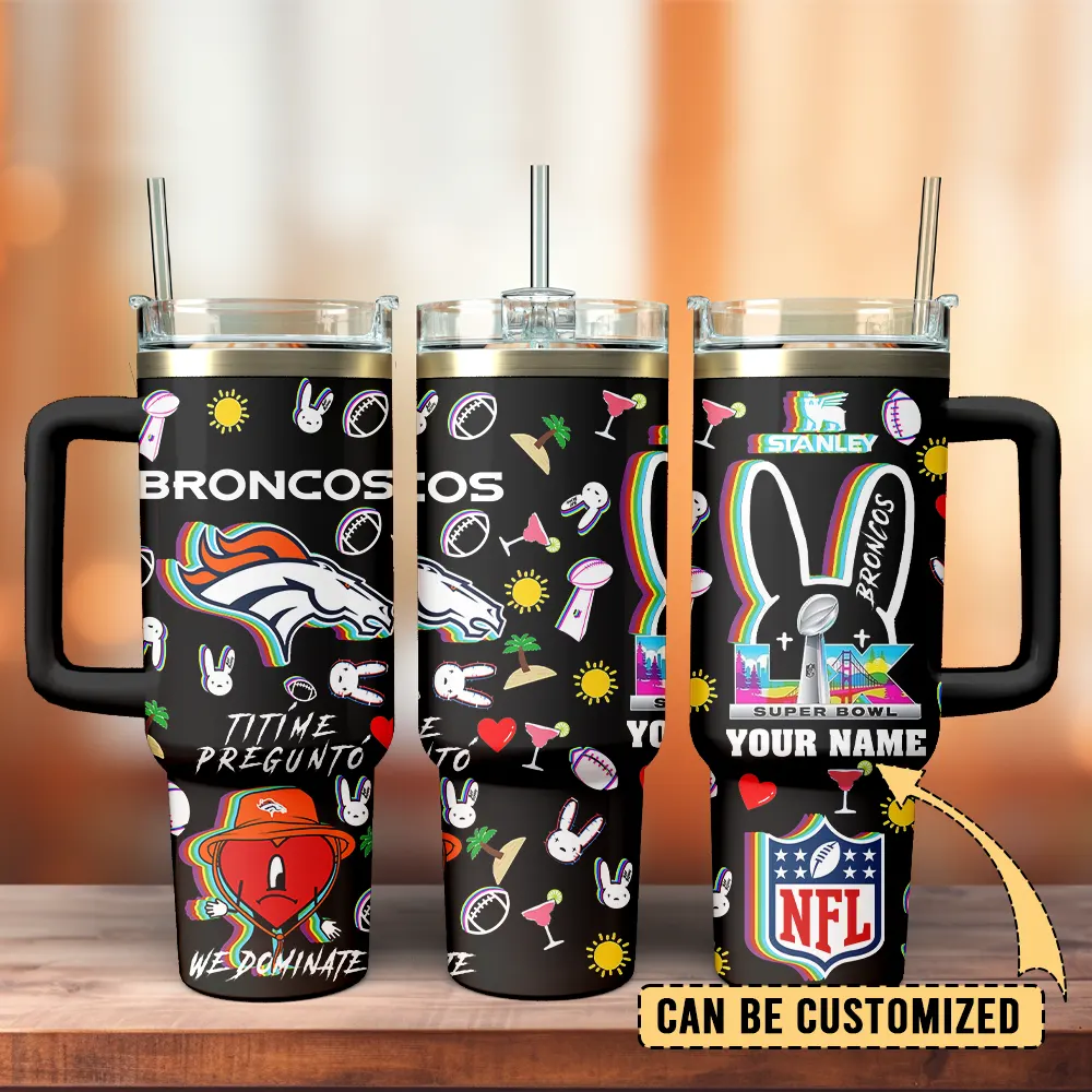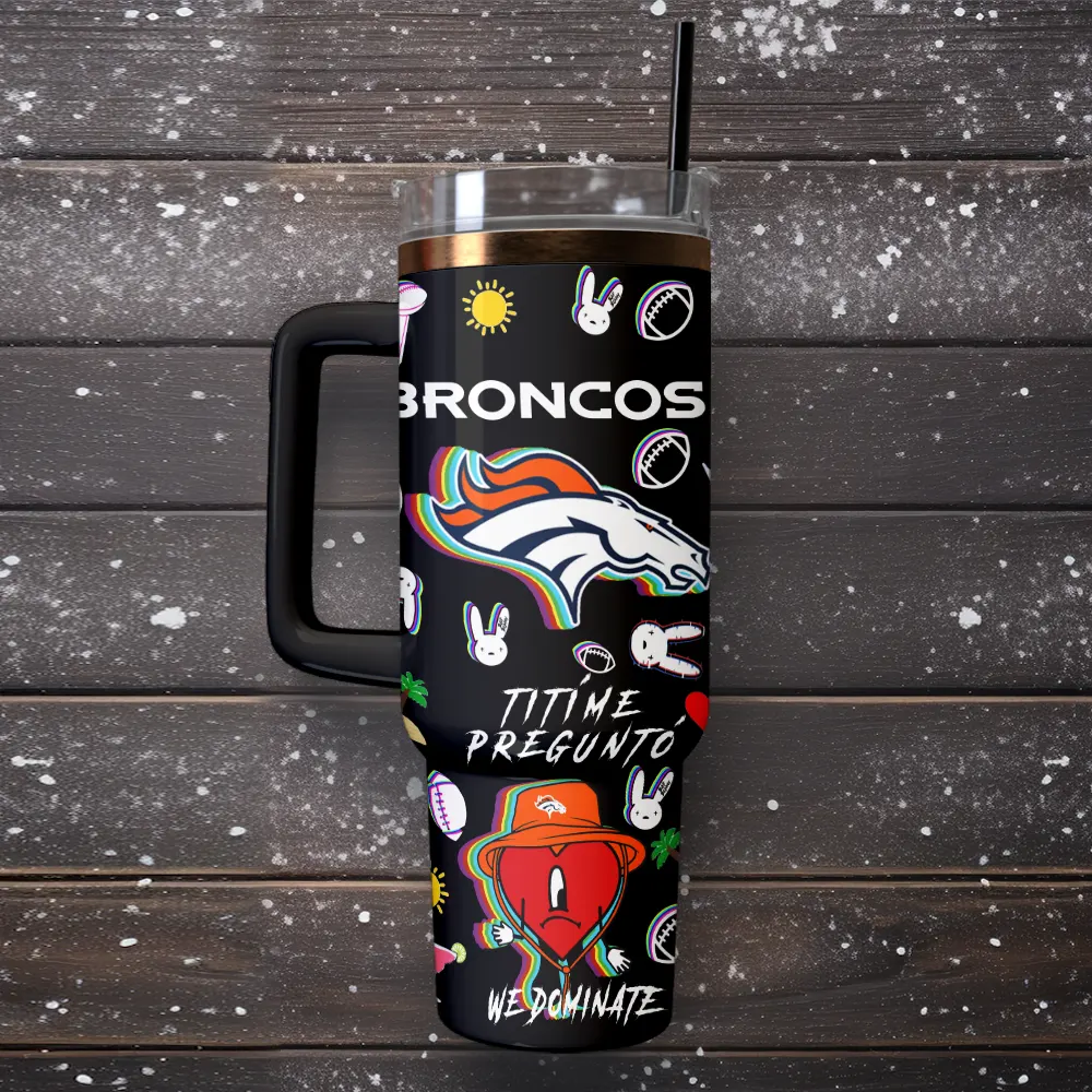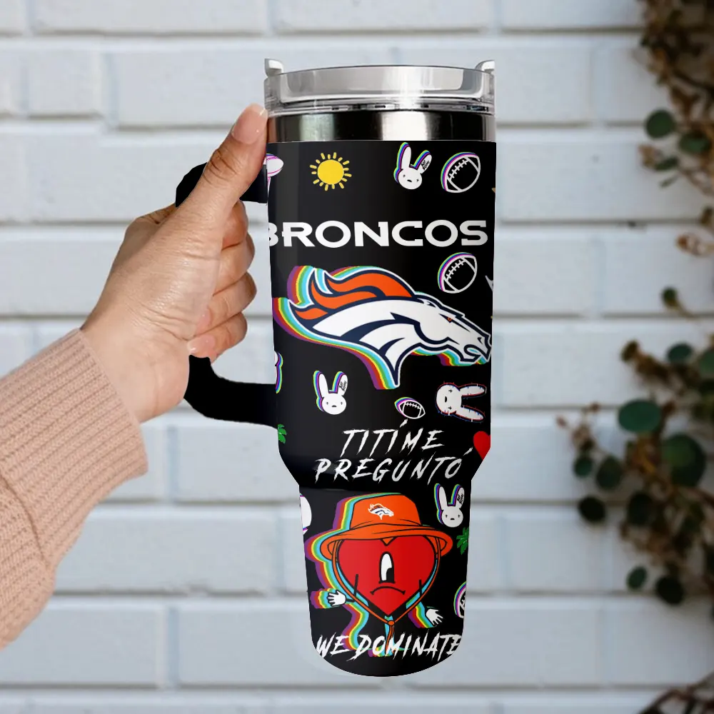 Denver Broncos NFL x Bad Bunny Custom Stanley Quencher 40oz Stainless Steel Tumbler With Handle