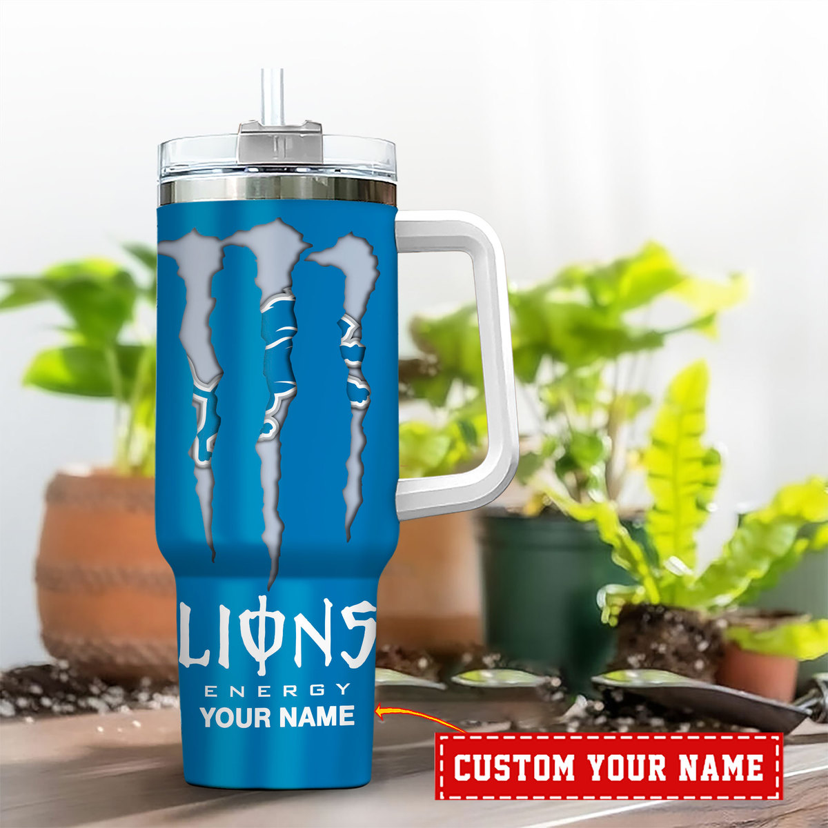 Detroit Lions NFL Energy Nutrition Facts Custom Stanley Quencher 40oz Stainless Steel Tumbler With Handle