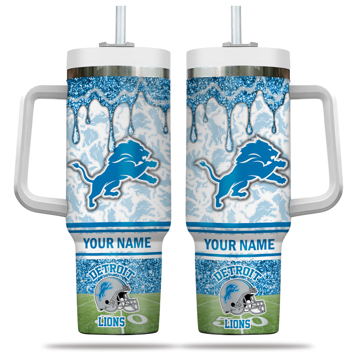 Detroit Lions NFL Glitter Custom Stanley Quencher 40oz Stainless Steel Tumbler With Handle