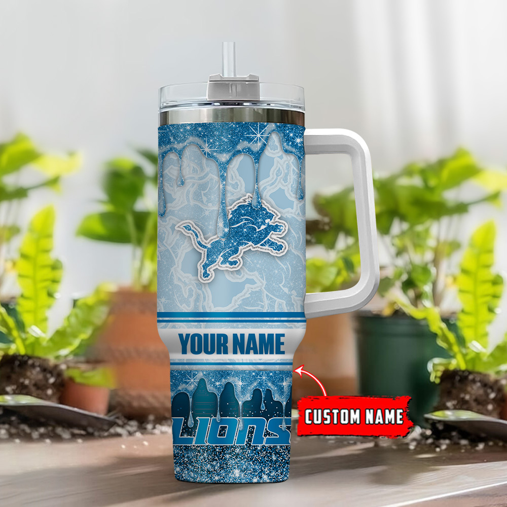 Detroit Lions NFL Glitter Custom Stanley Quencher 40oz Stainless Steel Tumbler With Handle