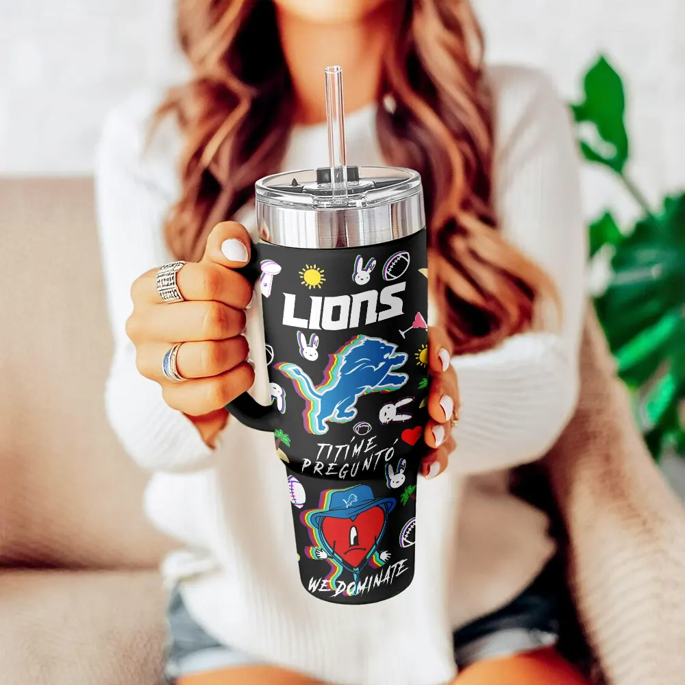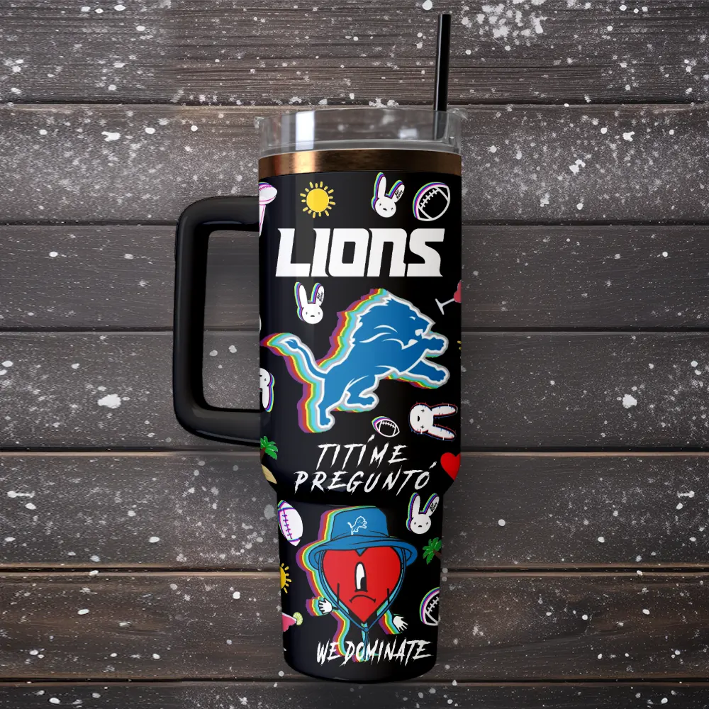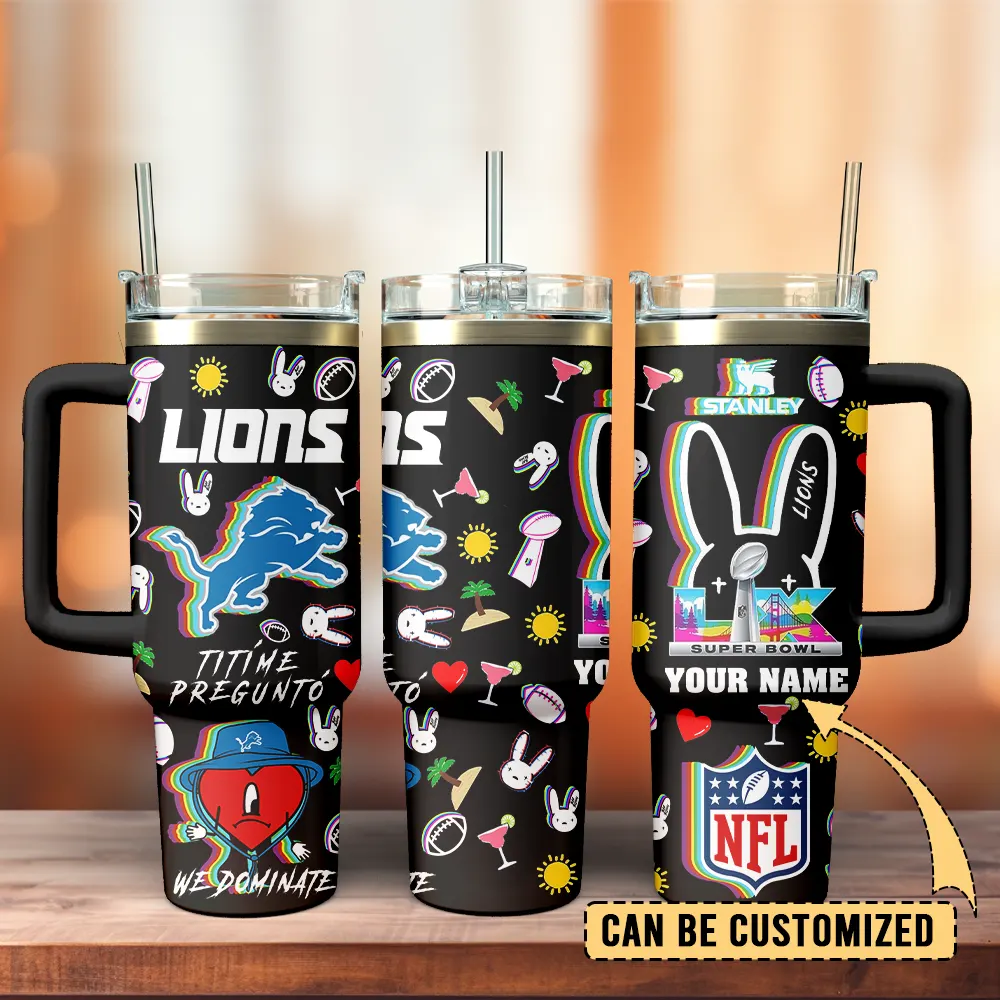 Detroit Lions NFL x Bad Bunny Custom Stanley Quencher 40oz Stainless Steel Tumbler With Handle