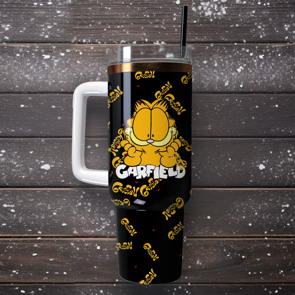 Garfield Cartoon Custom Stanley Quencher 40oz Stainless Steel Tumbler With Handle