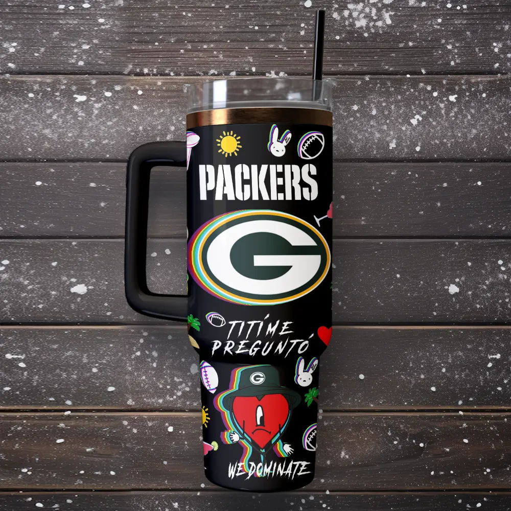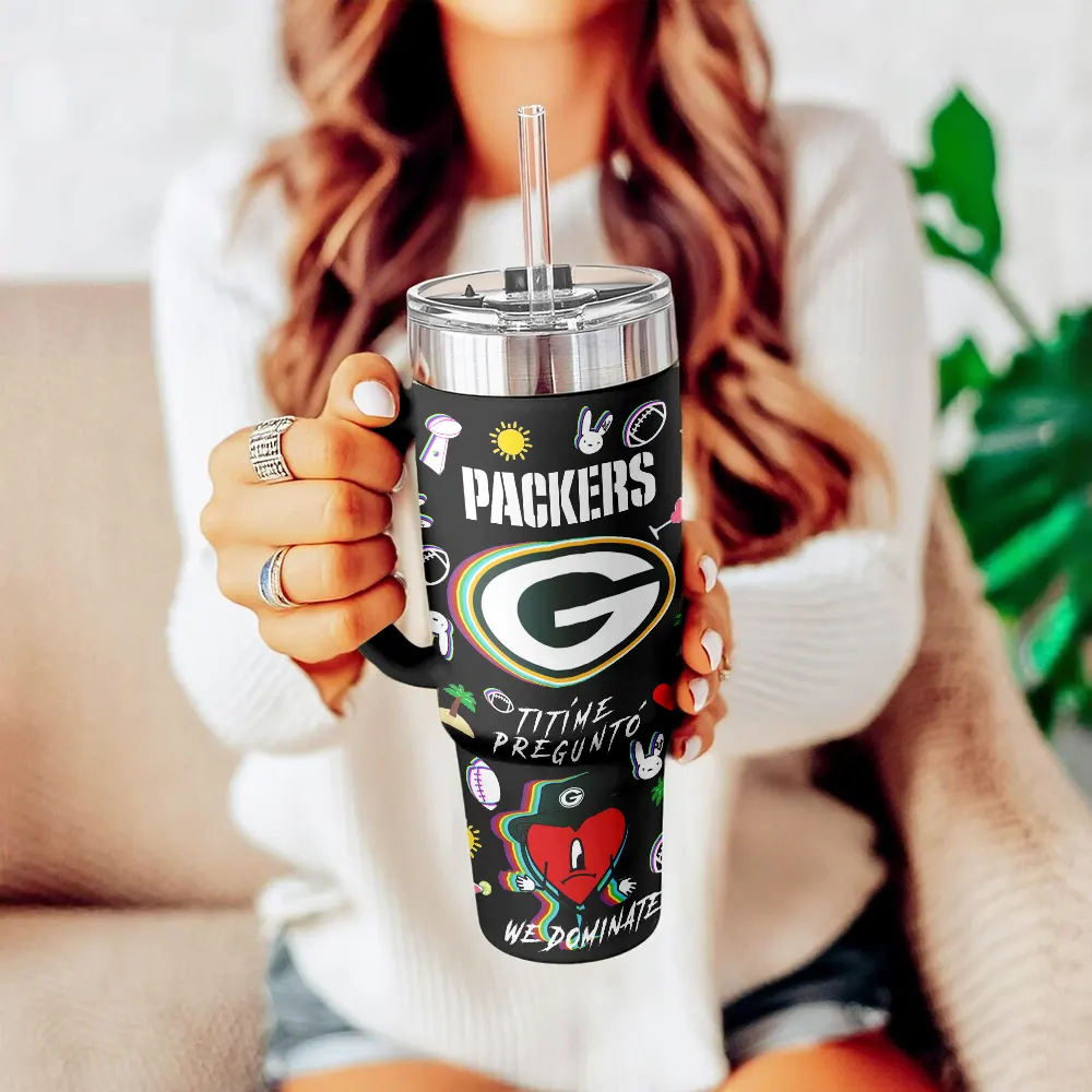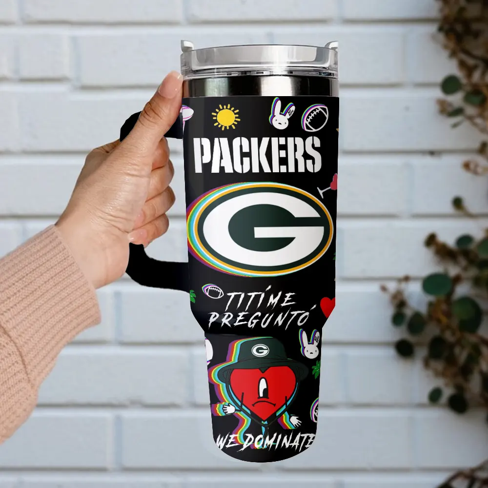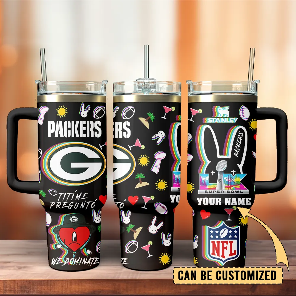Green Bay Packers NFL x Bad Bunny Custom Stanley Quencher 40oz Stainless Steel Tumbler With Handle