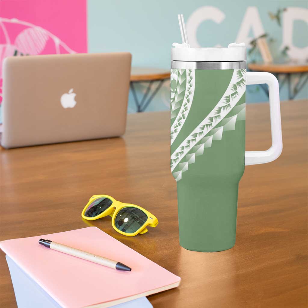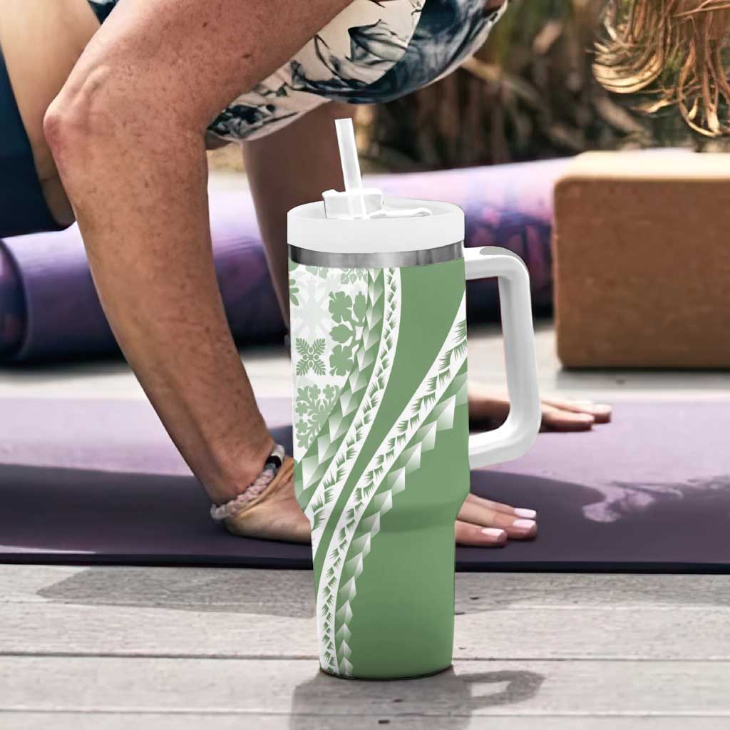 Green Hawaiian Quilt Pattern Custom Stanley Quencher 40oz Stainless Steel Tumbler With Handle