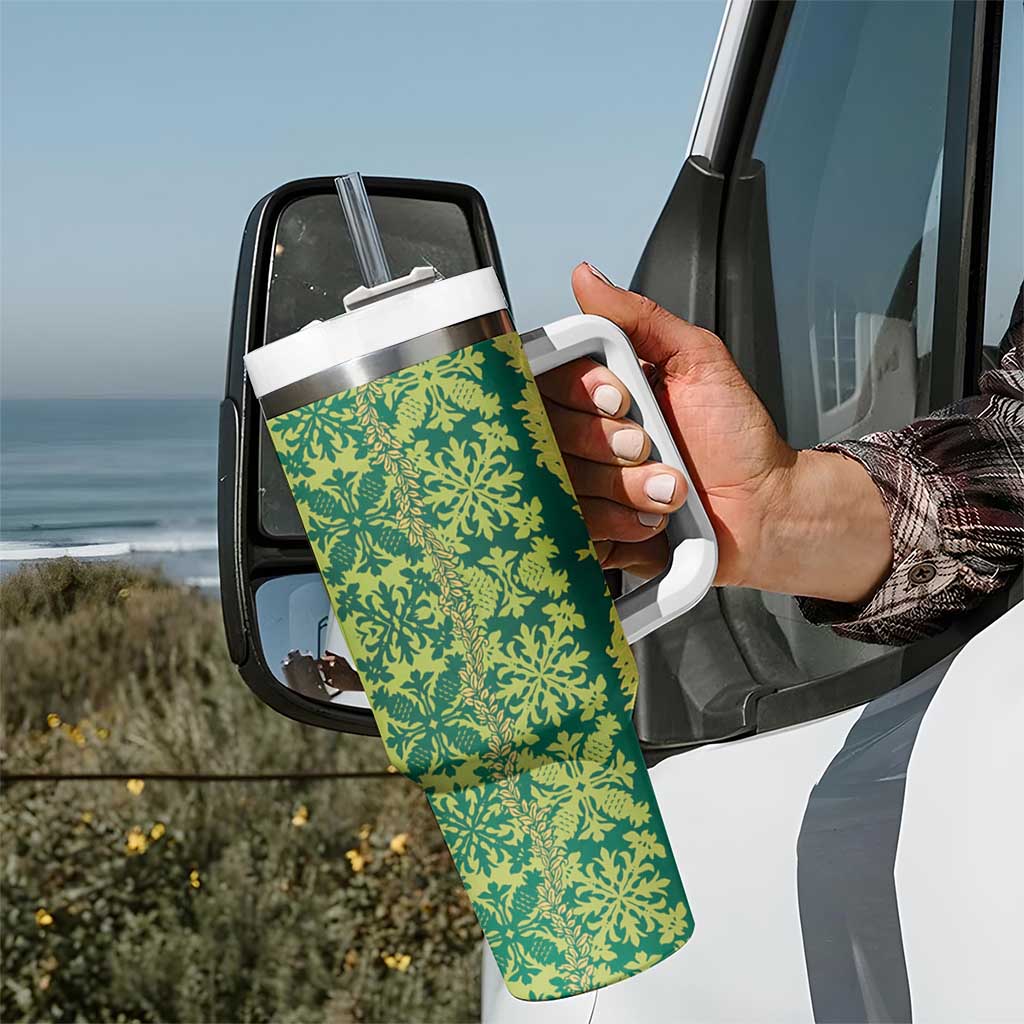 Hawaii Lei with Tribal Quilt Motif Custom Stanley Quencher 40oz Stainless Steel Tumbler With Handle