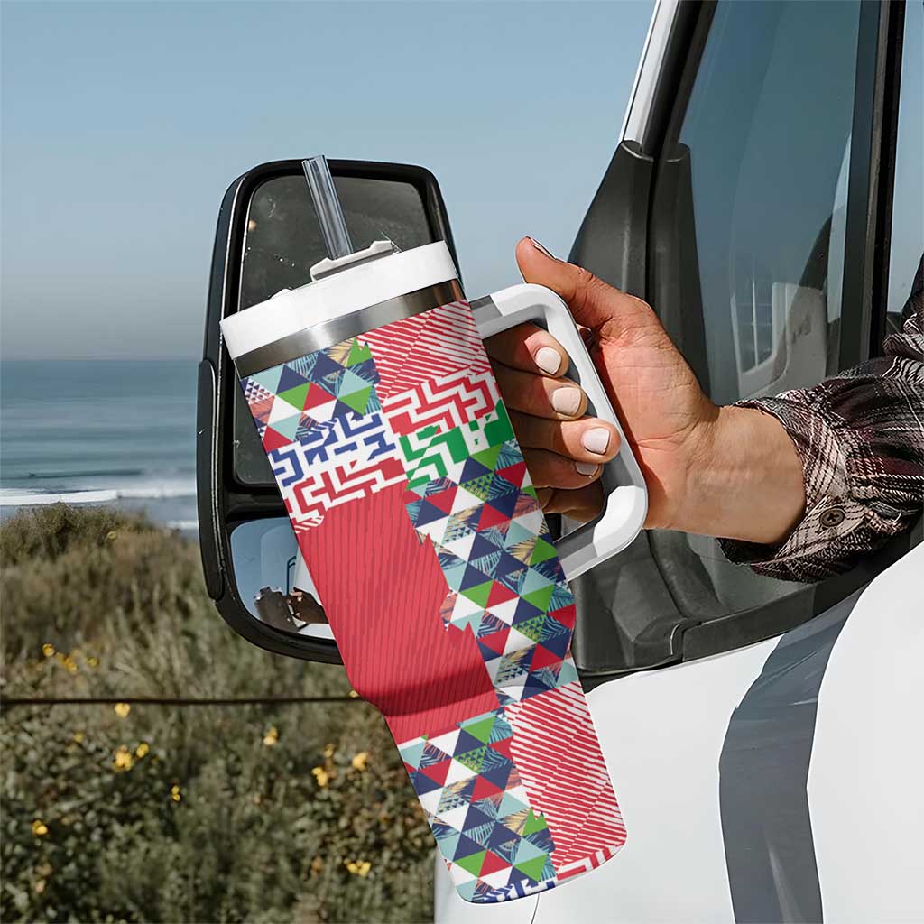 Hawaiian Floral Kakau Tropical Leaves-Sporty Style Custom Stanley Quencher 40oz Stainless Steel Tumbler With Handle