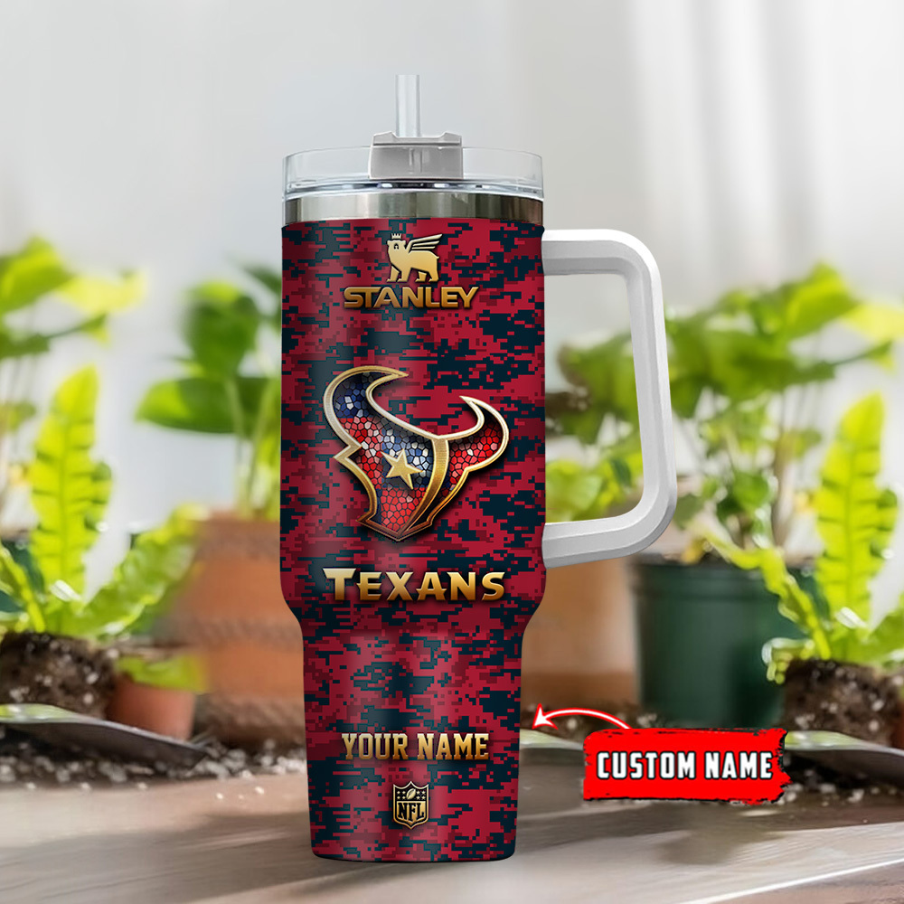 Houston Texans NFL Camouflage Golden Logo Custom Stanley Quencher 40oz Stainless Steel Tumbler With Handle