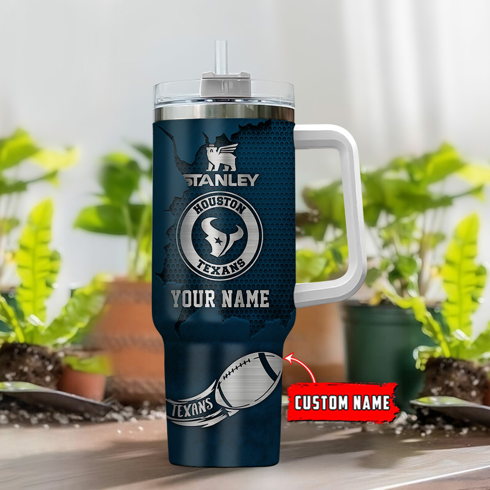 Houston Texans NFL Metal Style Custom Stanley Quencher 40oz Stainless Steel Tumbler With Handle