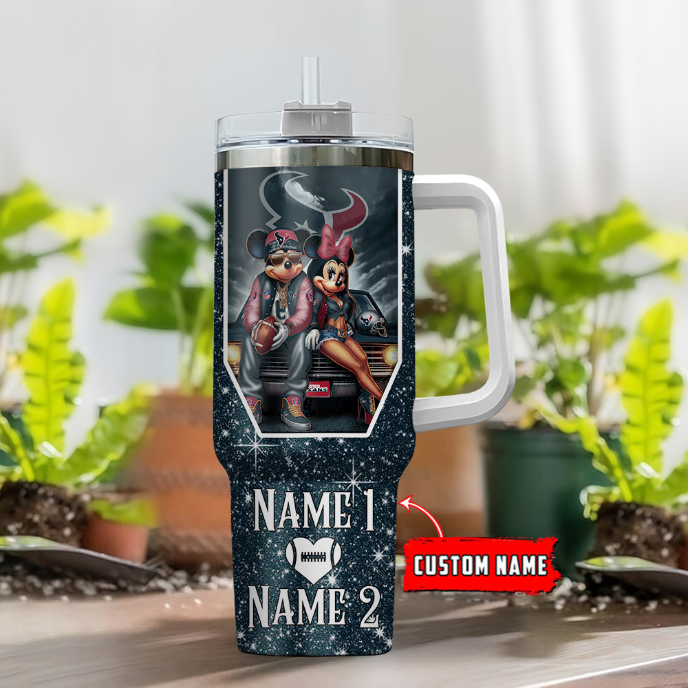 Houston Texans NFL Mickey And Minnie Couple Custom Stanley Quencher 40oz Stainless Steel Tumbler With Handle