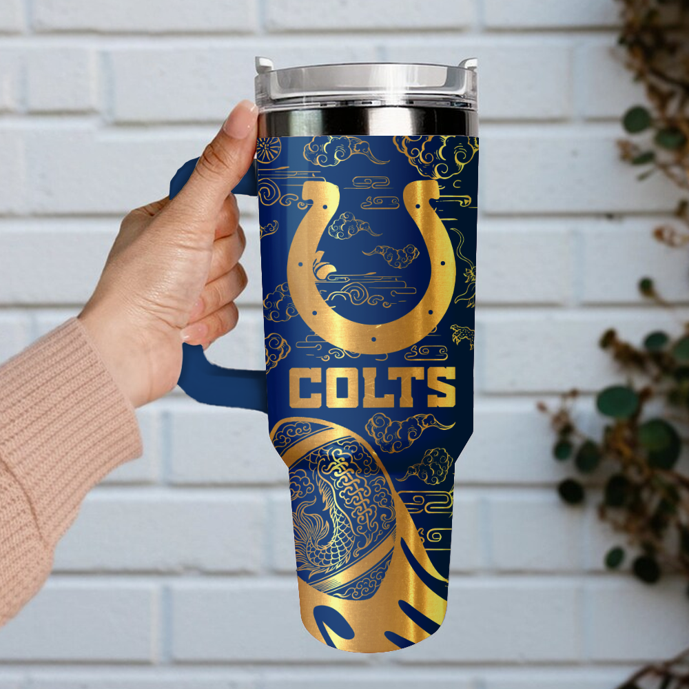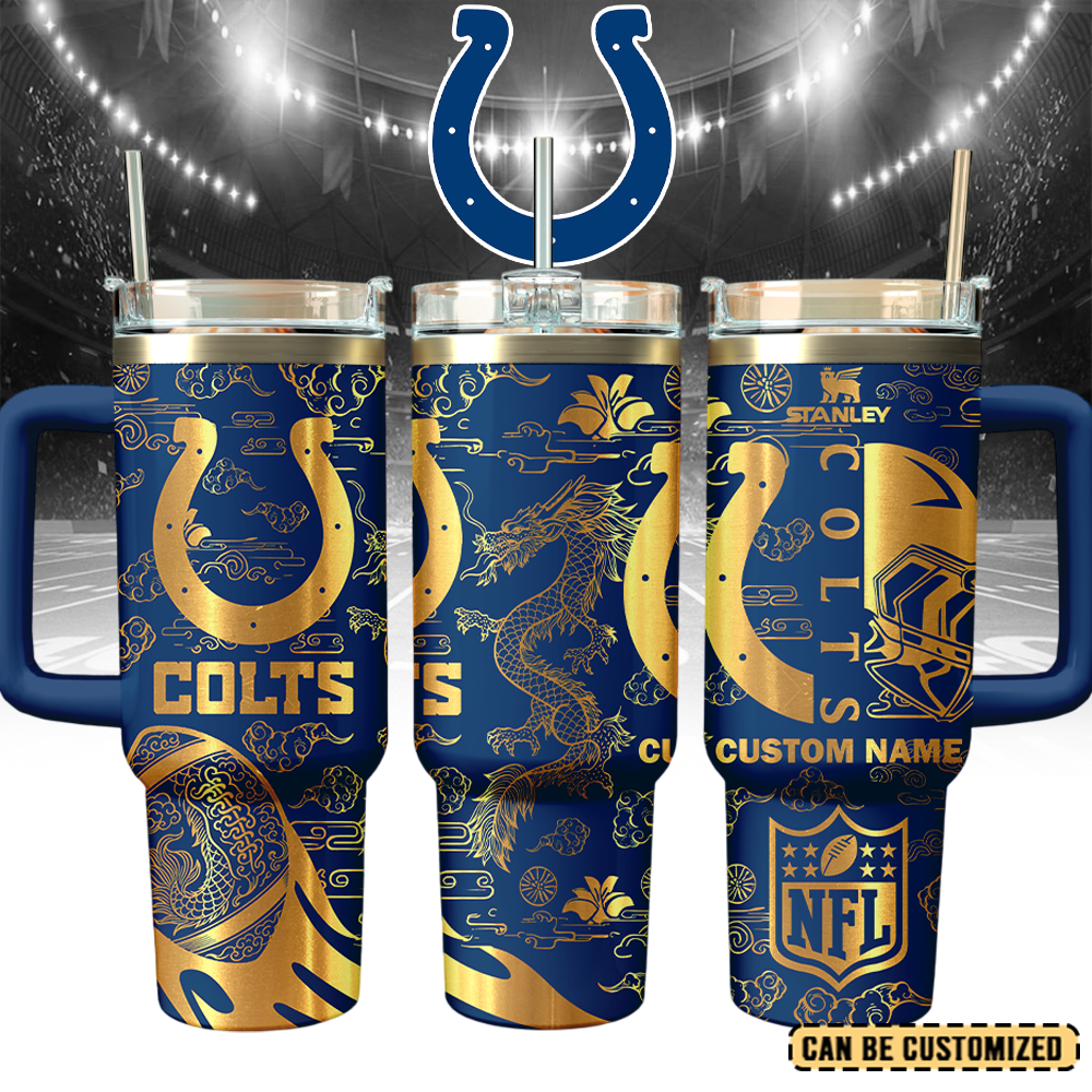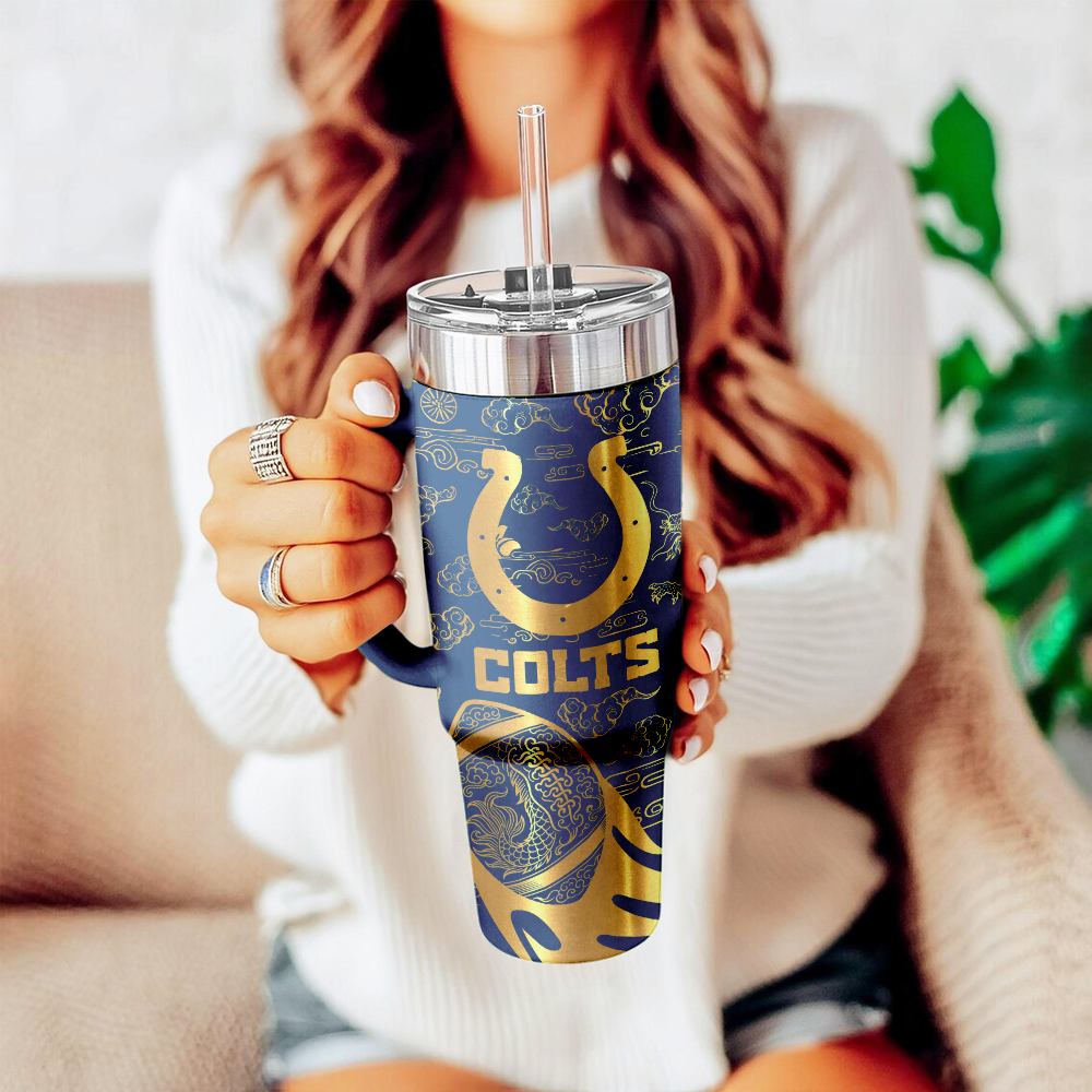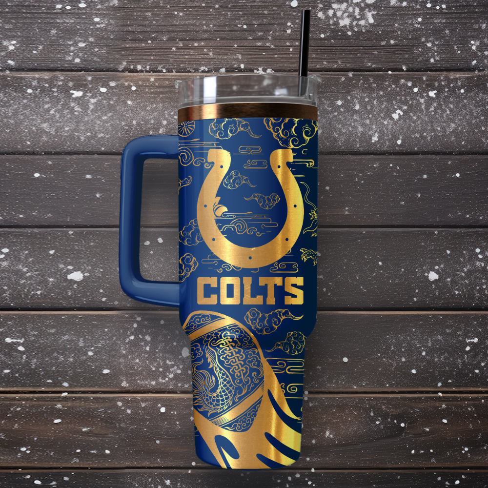 Indianapolis Colts Custom Stanley Quencher 40oz Stainless Steel Tumbler With Handle