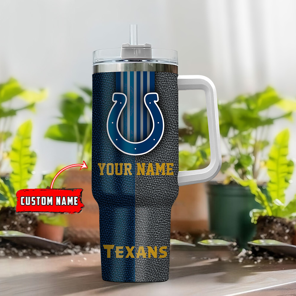 Indianapolis Colts NFL Leather Effect Custom Stanley Quencher 40oz Stainless Steel Tumbler With Handle