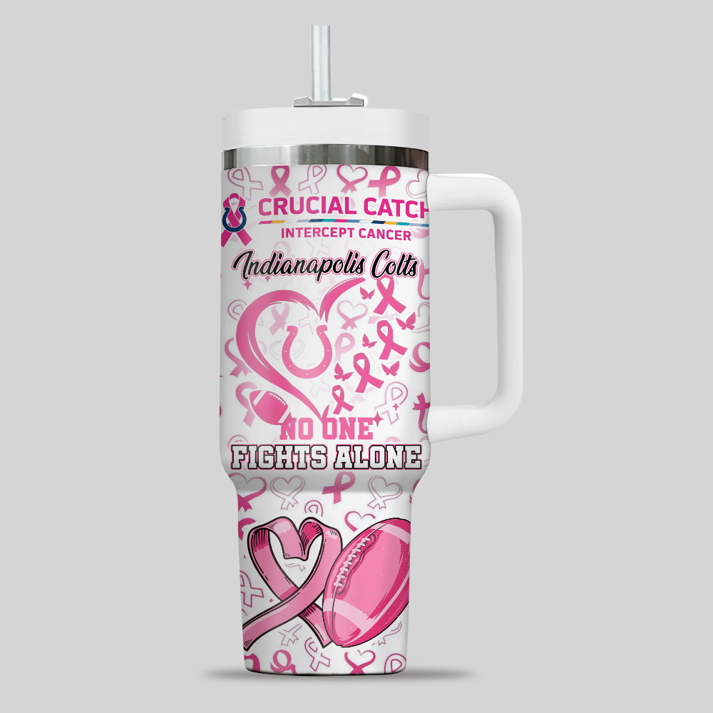 Indianapolis Colts NFL x Breast Cancer Awareness Custom Stanley Quencher 40oz Stainless Steel Tumbler With Handle