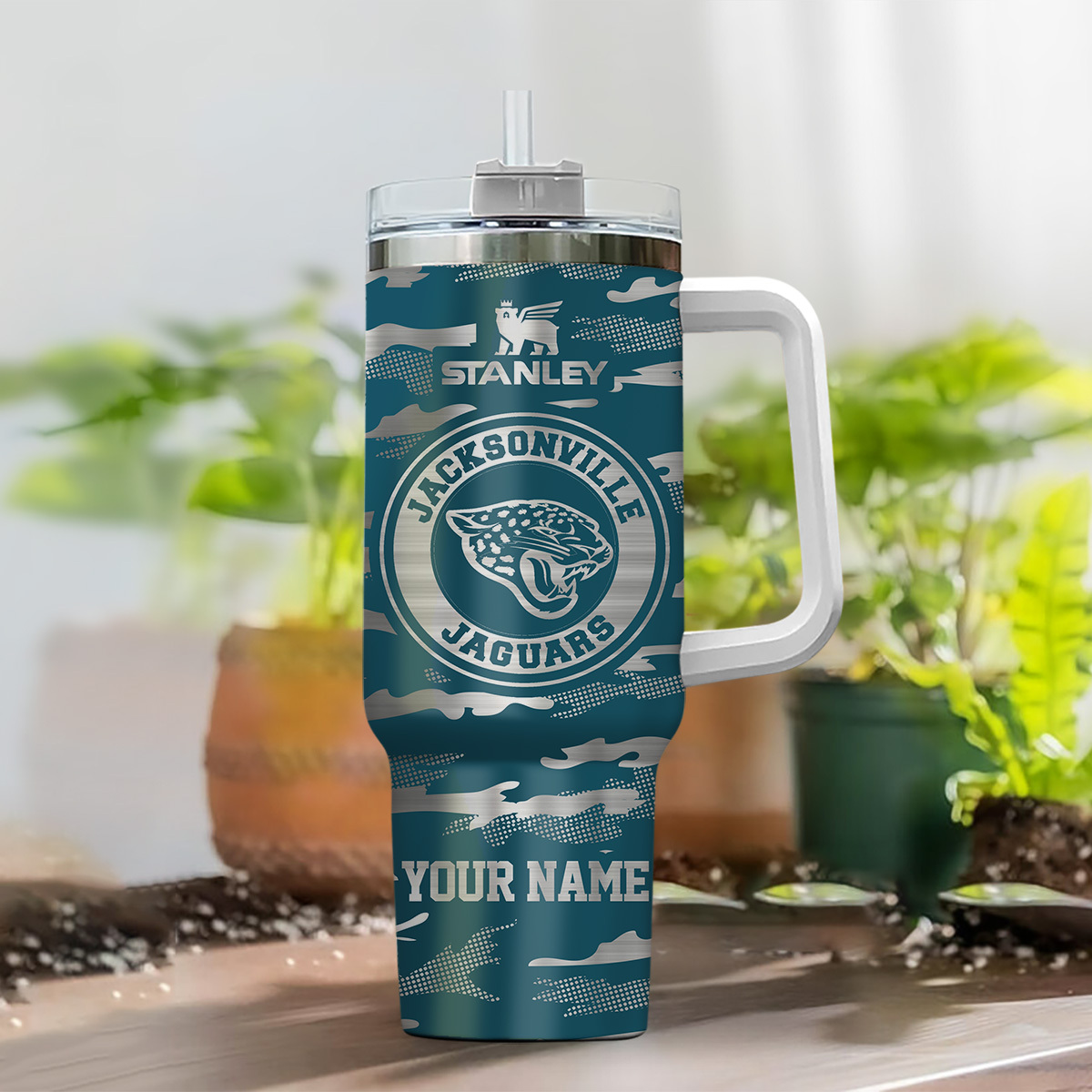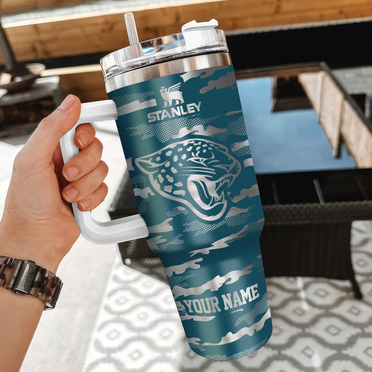 Jacksonville Jaguars NFL Camo Pattern Custom Stanley Quencher 40oz Stainless Steel Tumbler With Handle