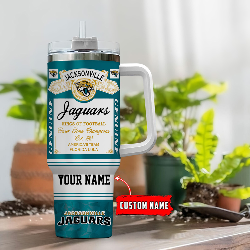 Jacksonville Jaguars NFL Kings of Football Custom Stanley Quencher 40oz Stainless Steel Tumbler With Handle
