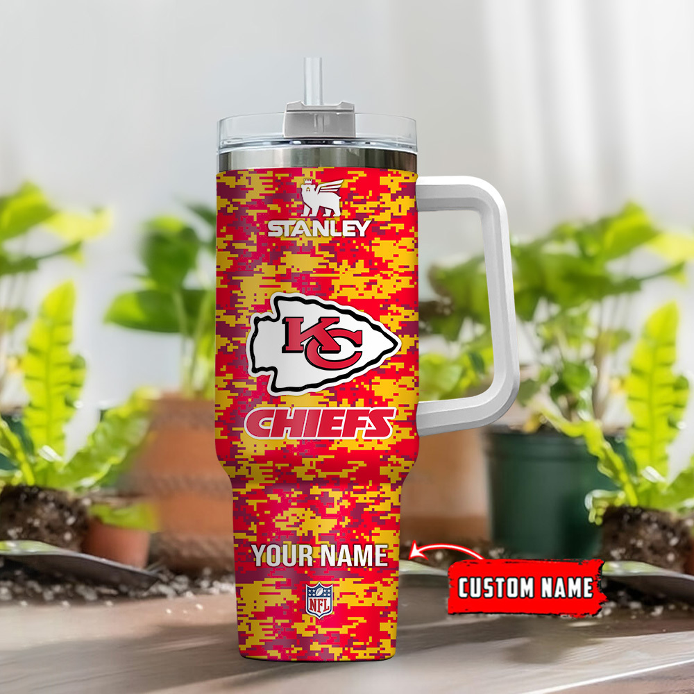 Kansas City Chiefs NFL Camouflage Custom Stanley Quencher 40oz Stainless Steel Tumbler With Handle
