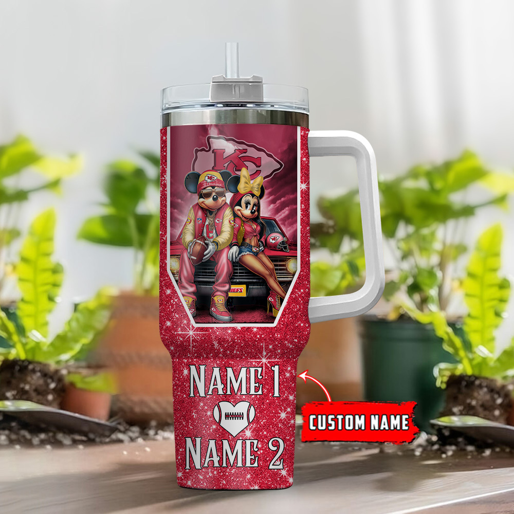 Kansas City Chiefs NFL Mickey And Minnie Couple Custom Stanley Quencher 40oz Stainless Steel Tumbler With Handle